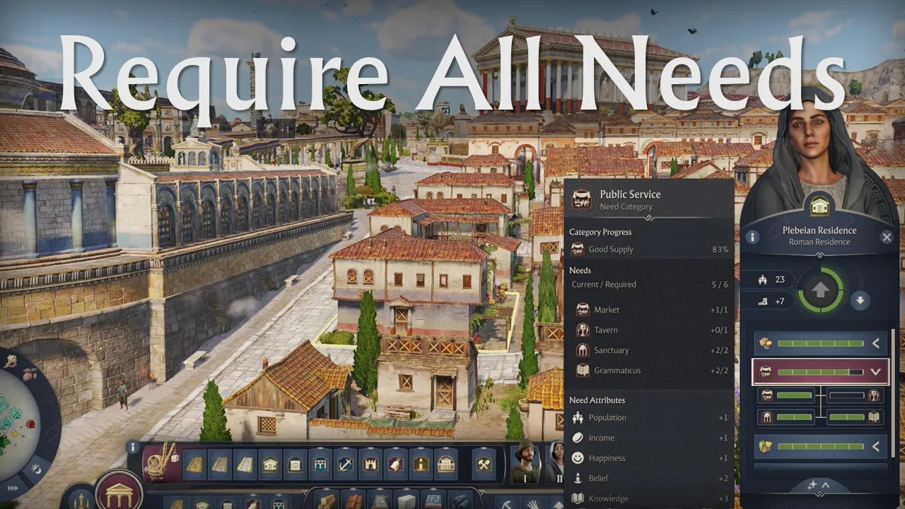 在《纪元117:罗马和平》中,每一个居民区的升级都需要满足所有基础生活需求。这款 MOD 将这一规则进一步强化,要求玩家在升级住宅前必须完美平衡各种公共服务设施,从而提升游戏的真实性和挑战性。