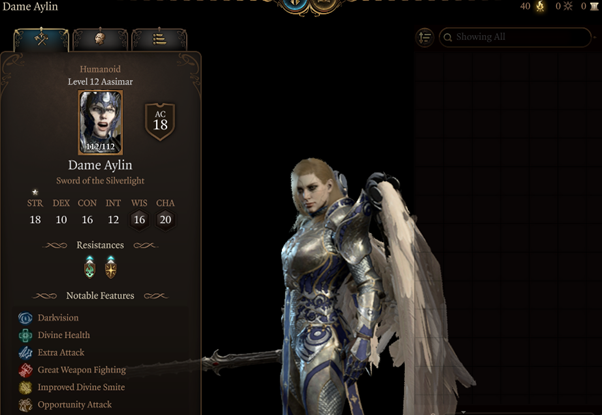 – 女士艾琳(4级、8级及12级圣武士)