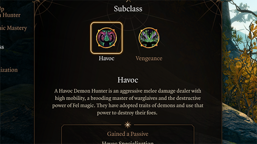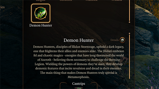 这是一个受《魔兽世界》宇宙启发的恶魔猎手职业模组,包含两个子职业专精: