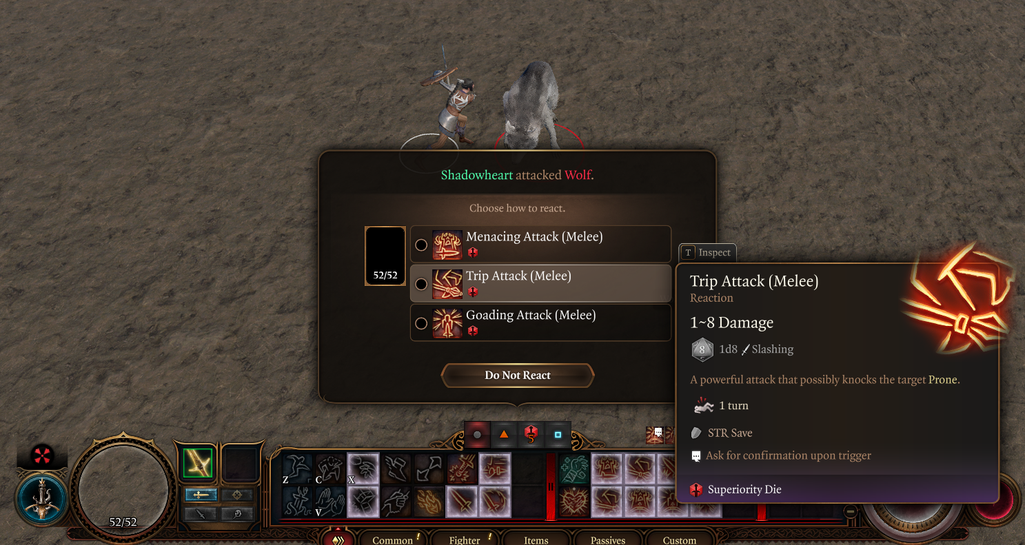 - 在获得改进战斗优势被动技能后,反应菜单中不会立即更新优势骰为d10。功能上仍然正确工作,并且保存和重新加载可以修复显示问题。