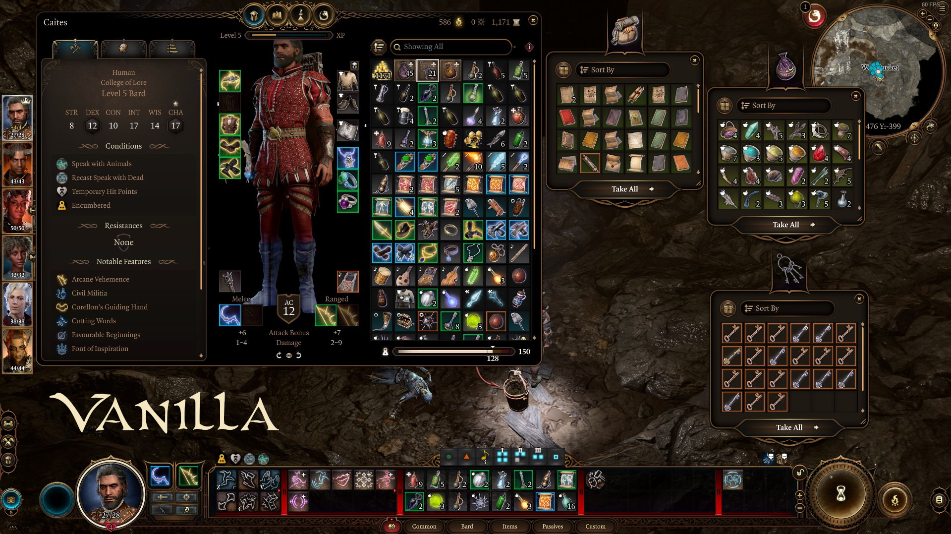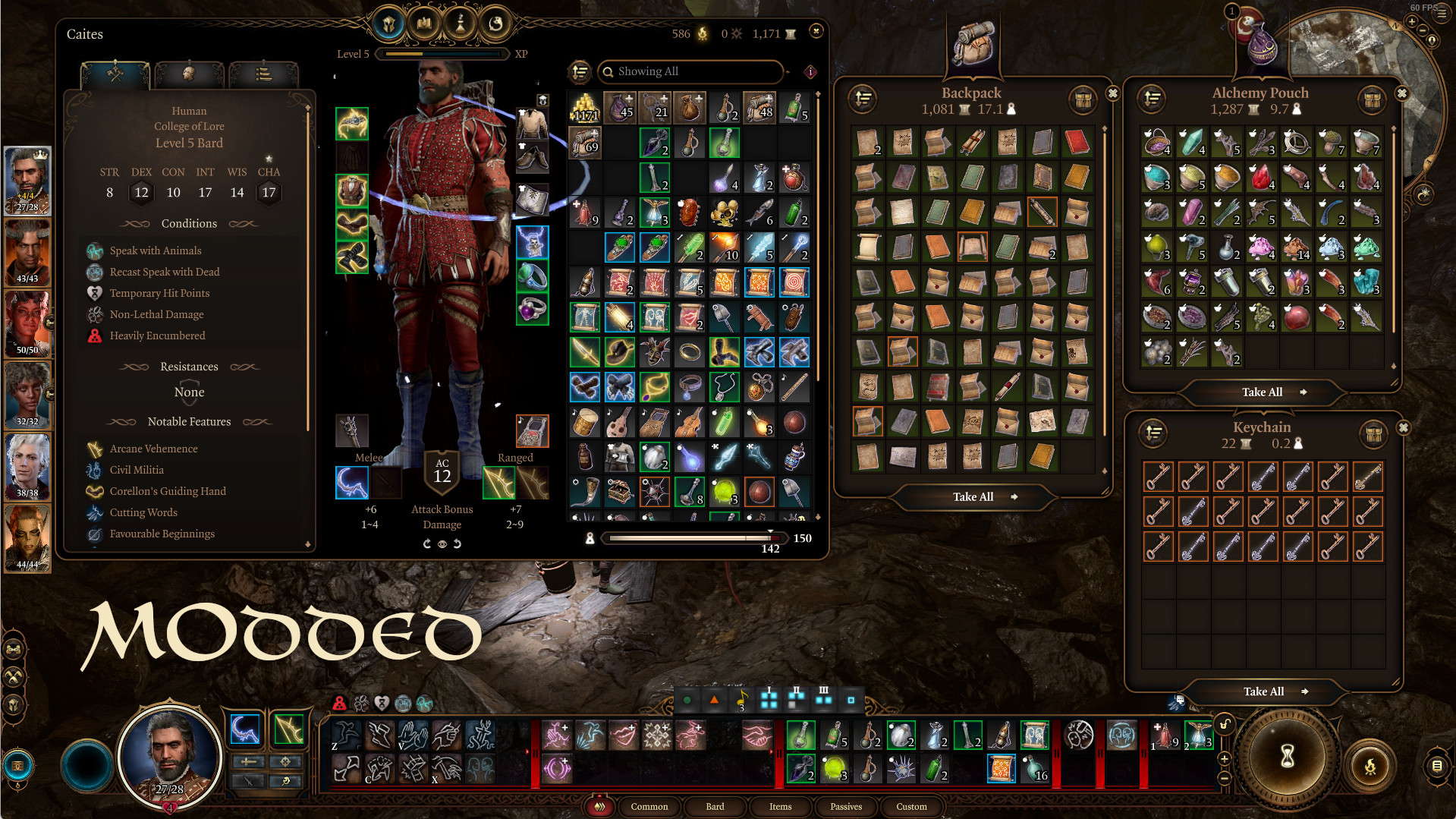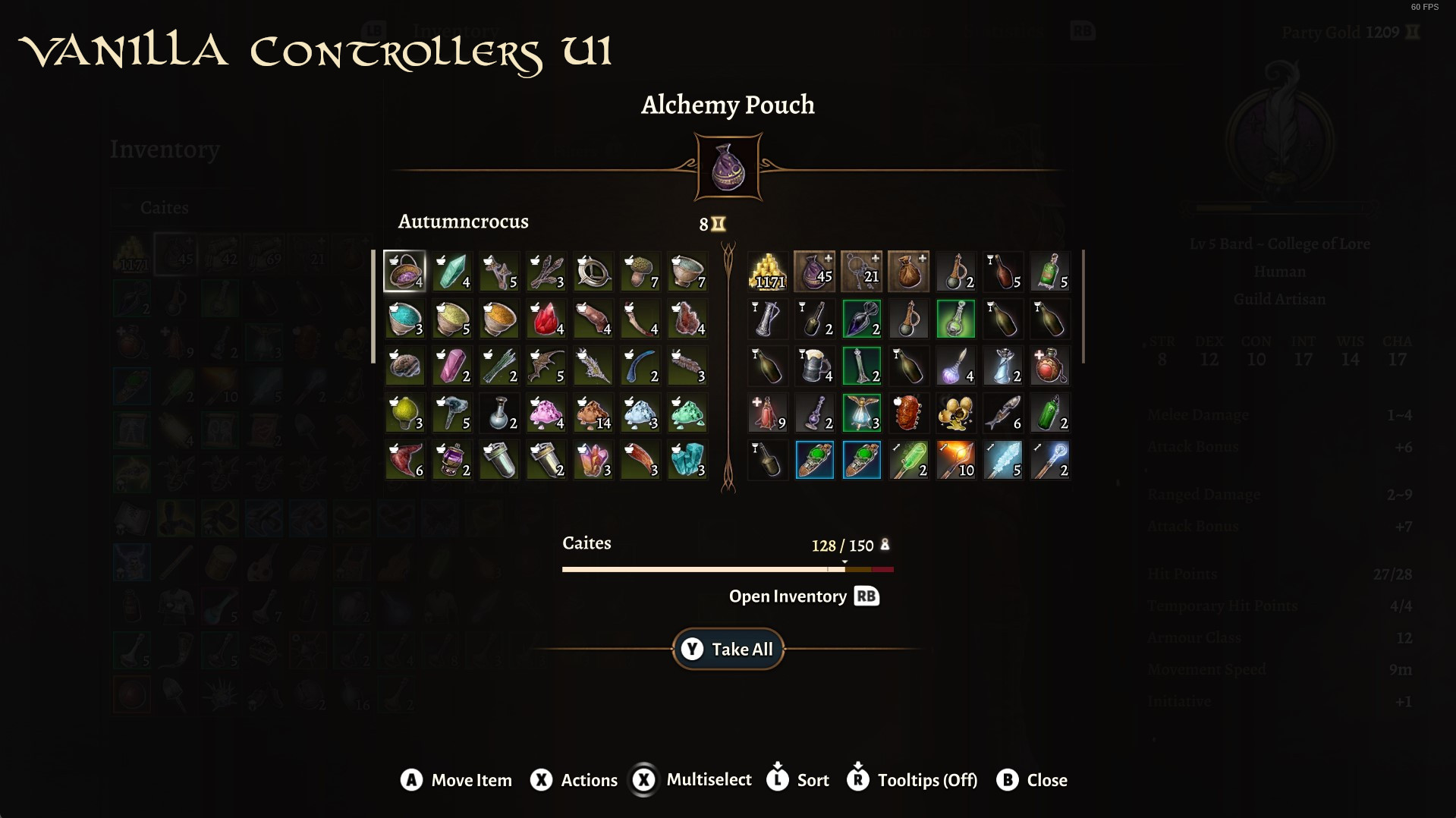 - 原版网格太小。默认的 3×5 网格意味着每次打开背包时都需要通过拖动缩放按钮来调整大小。使用该模组后,默认网格为 6×7(或如果您更喜欢中等尺寸,则为 5×5),8×9 的版本也可以在 Nexus 上找到。