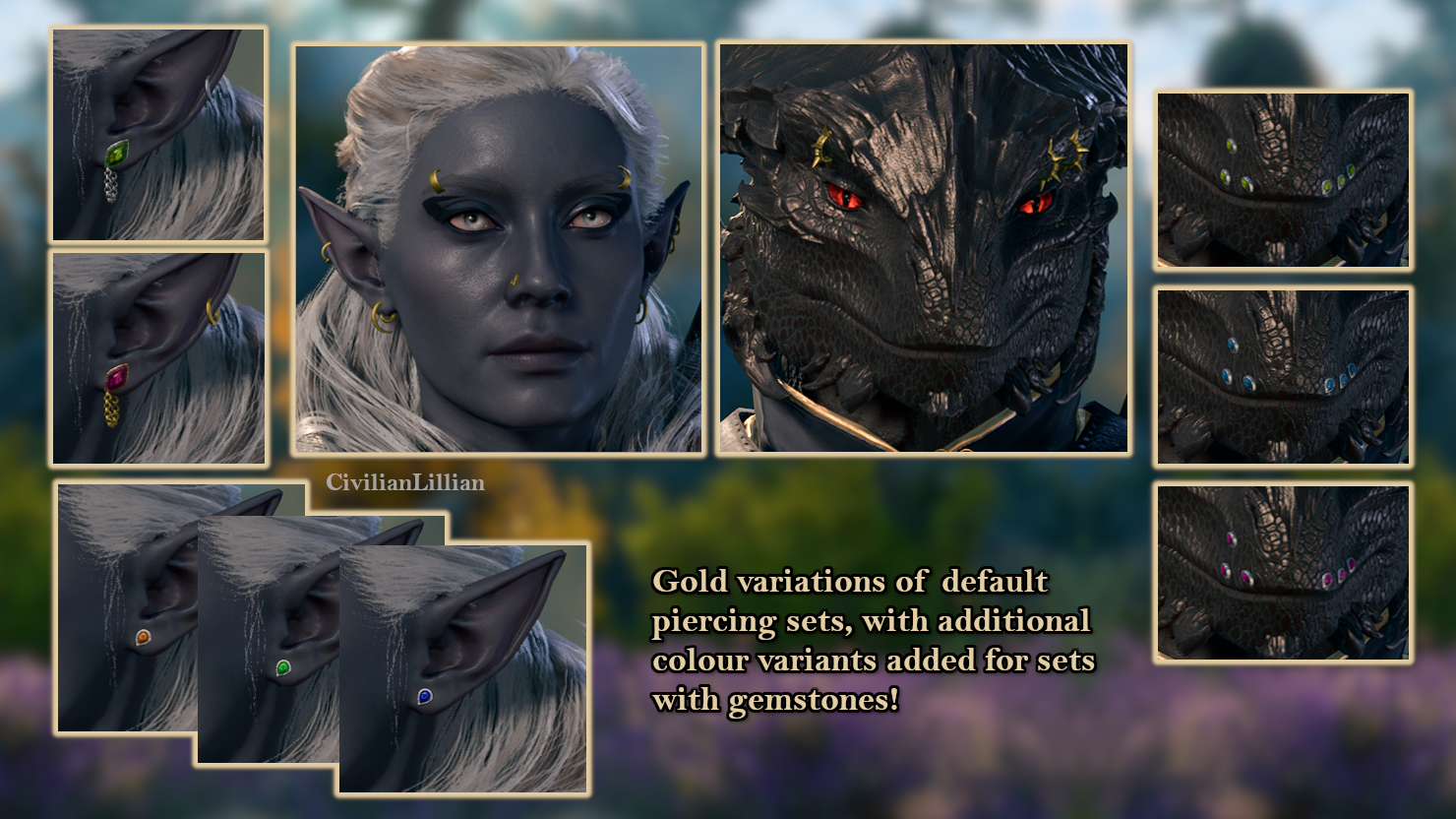 - 额外的穿刺饰品组合套装 + 将之前隐藏的穿刺饰品通过自定义组合和黄金变体使其可用