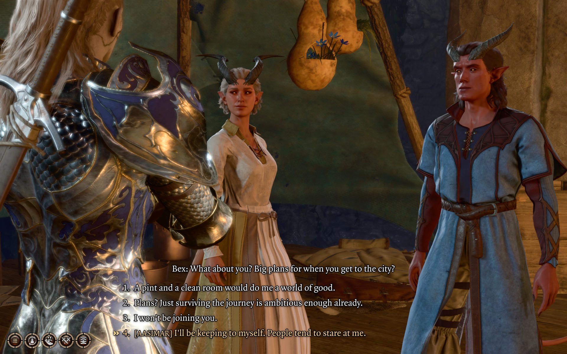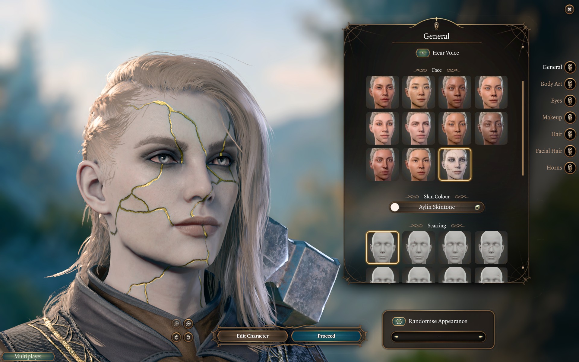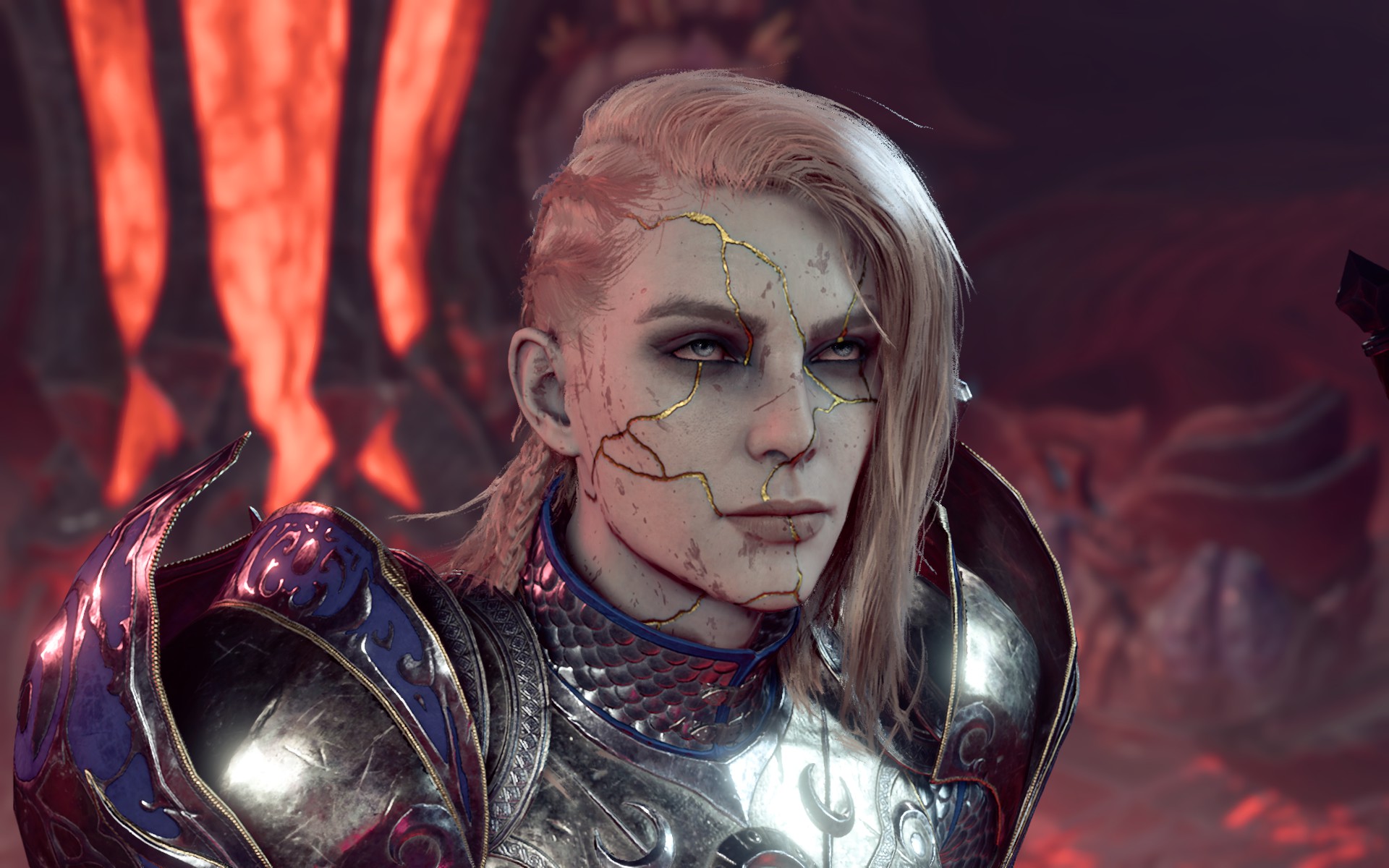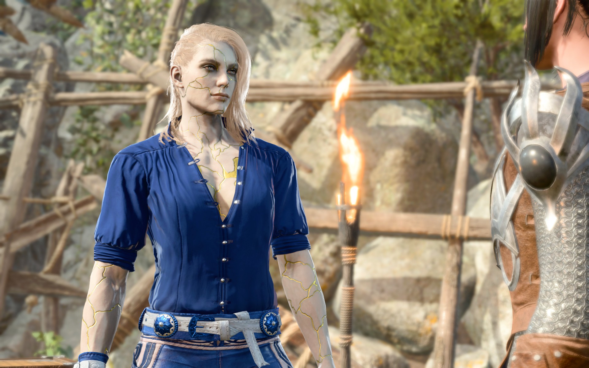 为了使用包含全身金缮纹理的完整自定义外观,艾琳现在可以作为起源角色进行选择。她的种族、职业和外貌都是可定制的(尽管体型不可更改,并且种族选择仅限于添加了自定义头部的角色),但她无论选择什么都会在对话中带有“阿西玛”和“塞勒恩圣骑士”的标签(请注意,“阿西玛”标签不会增加任何新内容,而是使用游戏中已有的标准“罕见种族”对话)。她没有其他特殊属性,并且机制上会具有你所选种族的统计数据和能力。此起源角色也与上述自定义阿西玛种族兼容。