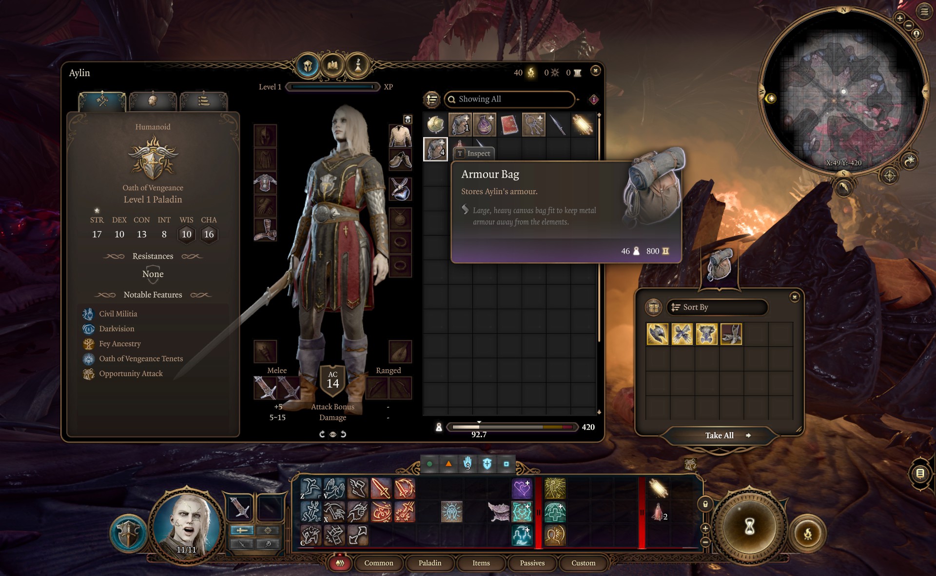 更新:该模组现在包括调整后的初始装备,使艾琳以标准复仇圣骑士套装开始游戏,但使用双手剑而不是战锤。她还从一个包含标志性盔甲的包中开始(没有特殊属性,为标准板甲),并且她的库存中有几个小纪念品。