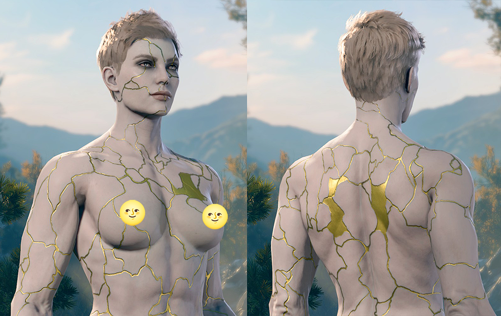 金缮的颜色与角色相关联,人类、精灵和半精灵的角色已为此目的添加。在那里选择的颜色将无缝应用于整个面部和身体。