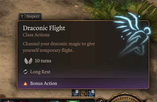 5级时获得龙裔飞行能力,但持续时间仅为1分钟而非玩家手册中的10分钟(出于平衡考虑)