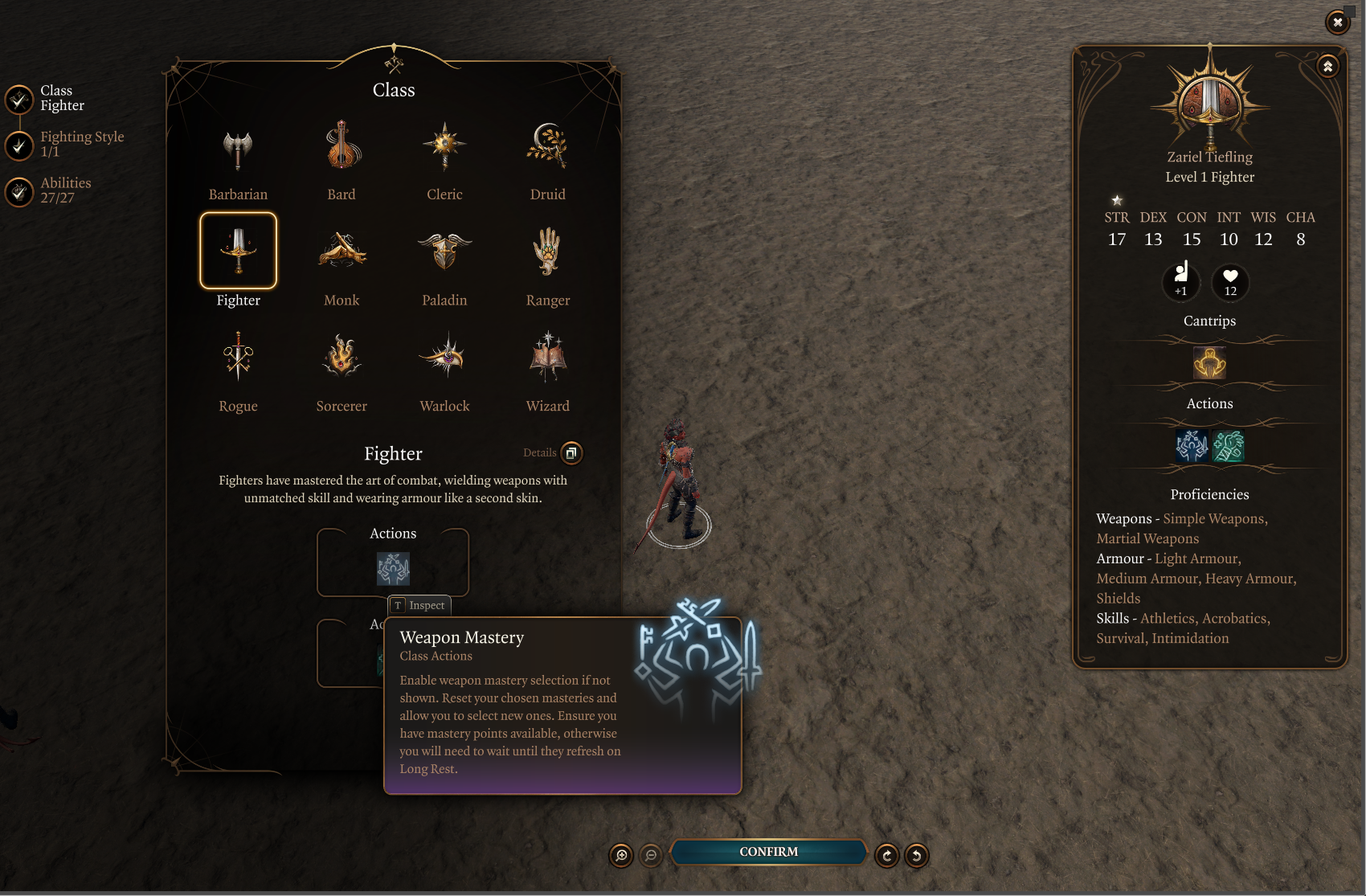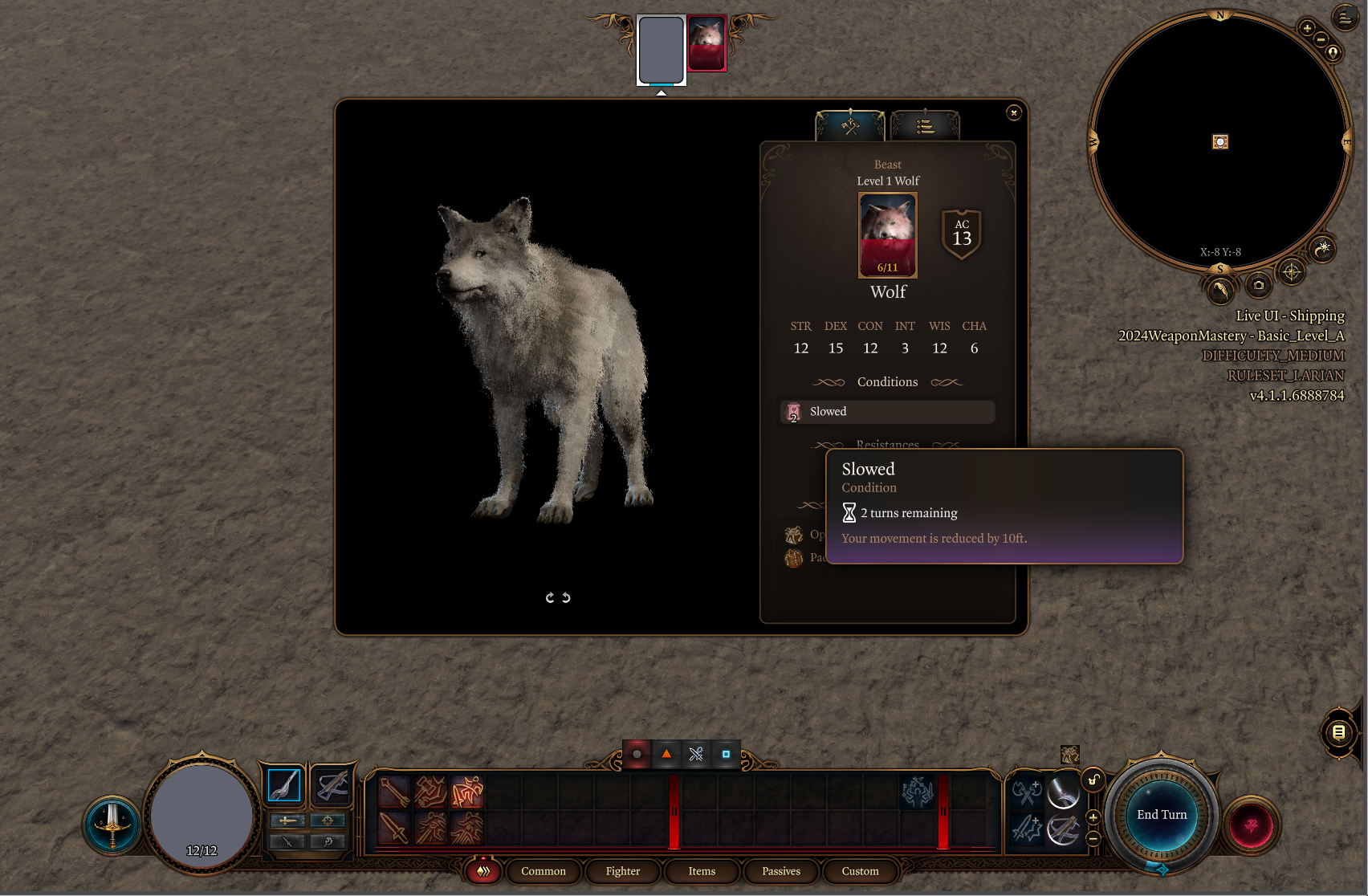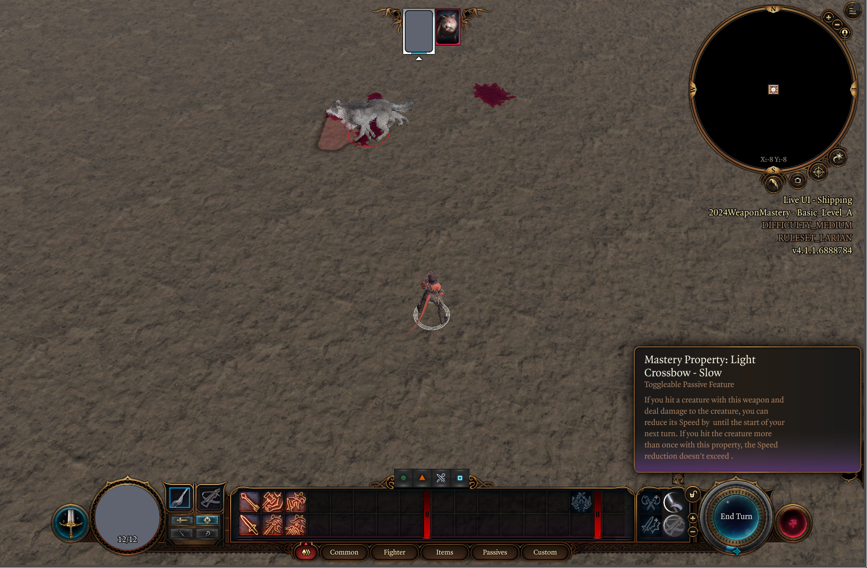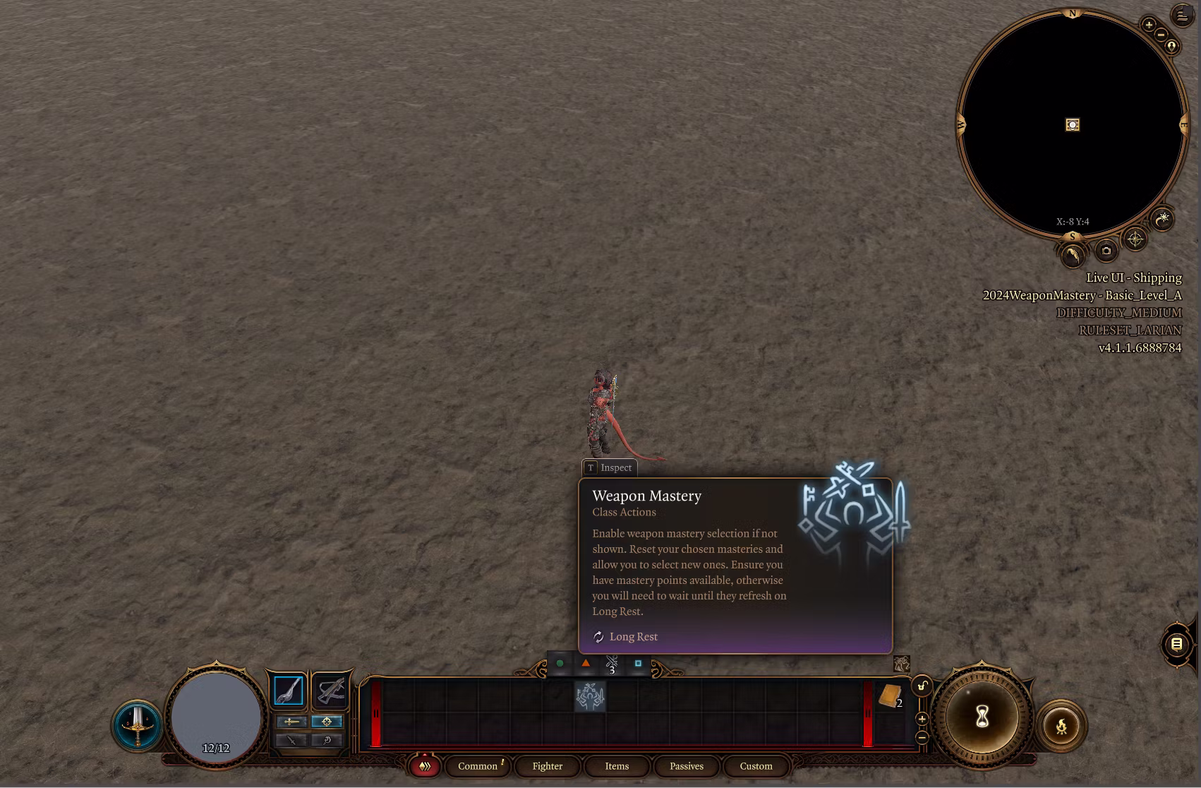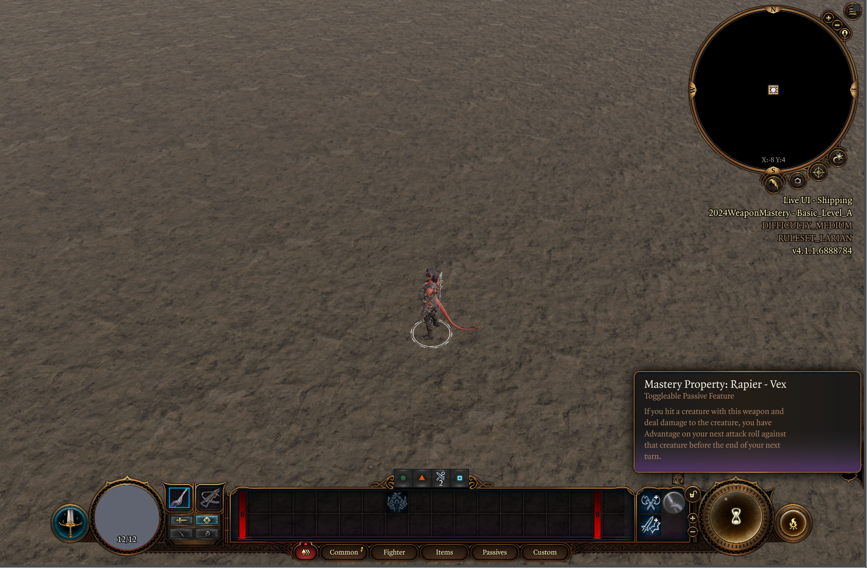 激活时,请使用“武器精通”动作,然后选择你想使用的精通属性。根据规则原文,你应该只能在长时间休息后交换武器精通,但我发现这很繁琐,因此我让“武器精通”动作重置所有已选的精通,并允许你在任何非战斗状态下重新选择新的精通。