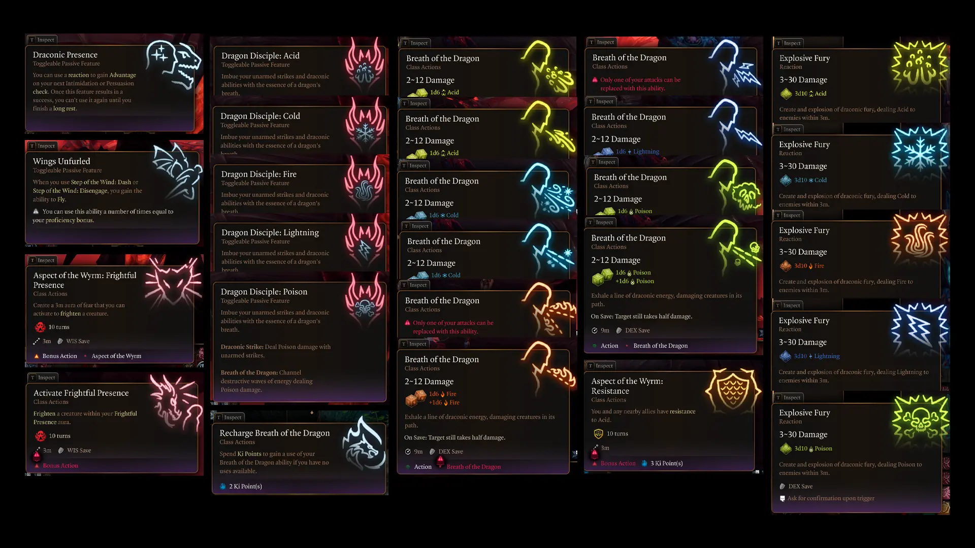 这一流派的基本教义认为,通过模仿巨龙,武僧能够更好地融入世界及其魔法。通过改变精神以与巨龙的力量共鸣,遵循此传统的武僧在战斗中增强了自己的实力,并且可以甚至借助巨龙之翼翱翔于空中。但所有这些力量都是为了一个更大的目标服务:实现