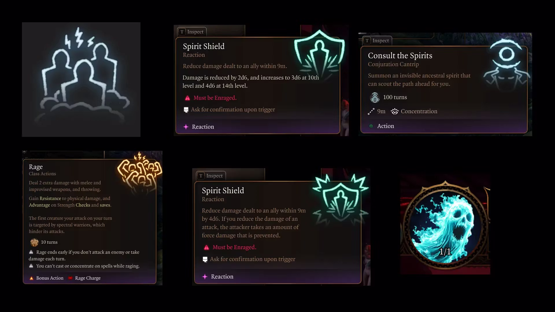 一些狂战士来自崇拜祖先的文化。这些部落教导说,过去的勇士们作为强大的灵魂留在世界上,可以引导和保护活着的人。当遵循这条路径的狂战士进入狂暴状态时,他们会联系灵界并召唤这些守护者灵魂来帮助他们。