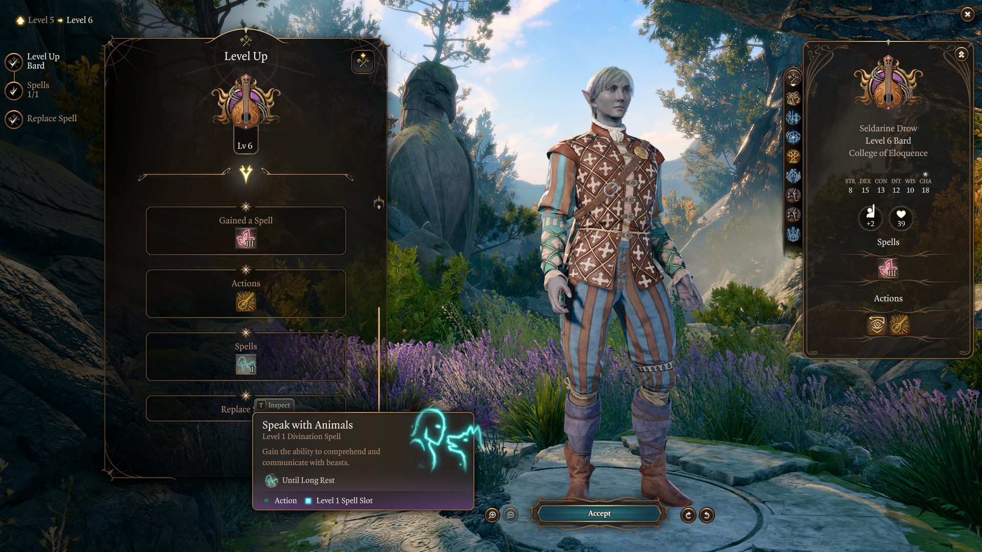 不屈的灵感:当盟友使用你的吟游诗人灵感来帮助进行属性检定时,他们可以获得优势;在攻击或豁免投骰中失败后不会失去吟游诗人灵感。与5E不同的是,如果你用于属性检定,则无法保留该次灵感。获得优势是尽可能接近原版的效果。