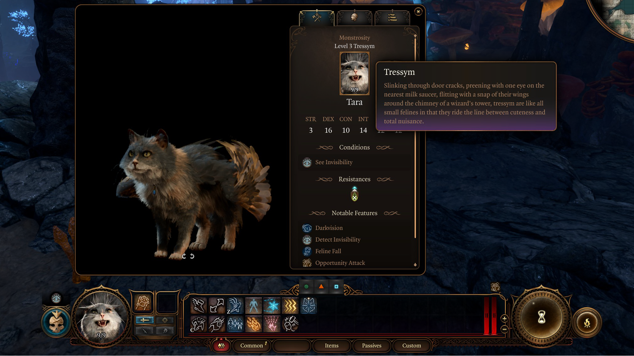- 秉承D&D树狮的特点,塔拉对毒药具有抗性,并且免疫中毒效果,可以侦测隐形生物。