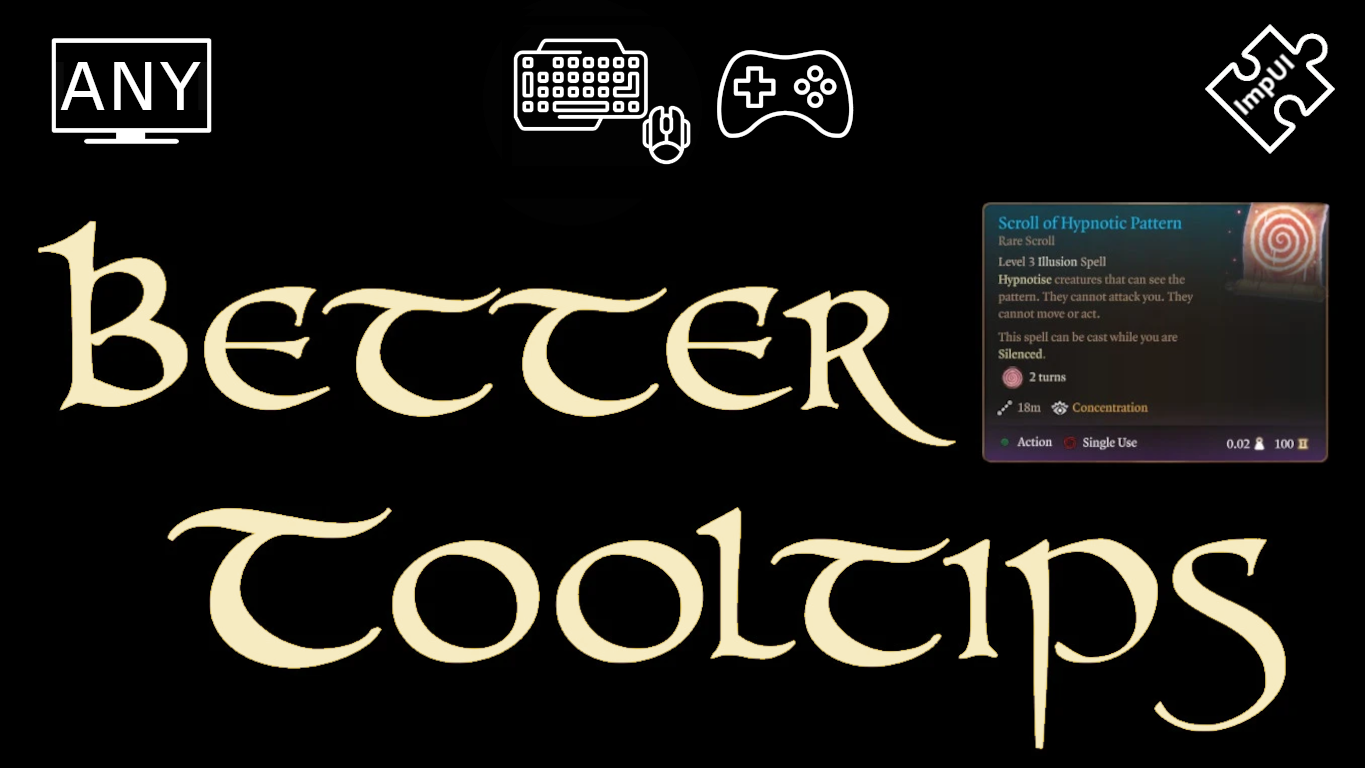 此模组改进了物品、法术、属性和所有小 UI 元素的提示信息,使其更加详细且具有更多有用的信息。可以将其视为 Better Inventory UI 的扩展版本,但针对的是提示而不是图标。