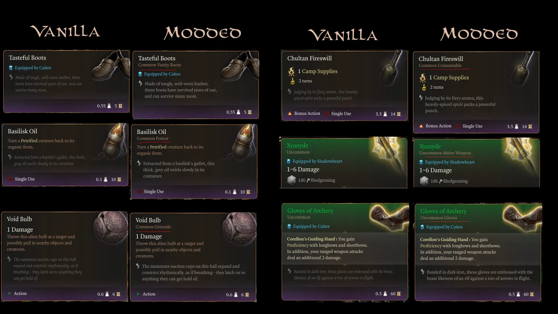 2. 你是否在努力弄清楚给定物品的功能?它是药剂还是垃圾物品?护甲靴子还是装饰品?这是因为大多数物品的类别信息很少会在标题下方显示。实际上只有两个:护甲类型和盾牌。我添加了19个更多类别:斗篷、戒指、项链、头盔、手套、靴子、装饰服装、装饰靴子、内衣、乐器、近战武器、远程武器、文档(笔记、书籍、光盘等)、手榴弹、箭矢、卷轴、药剂、消耗品和投掷物。