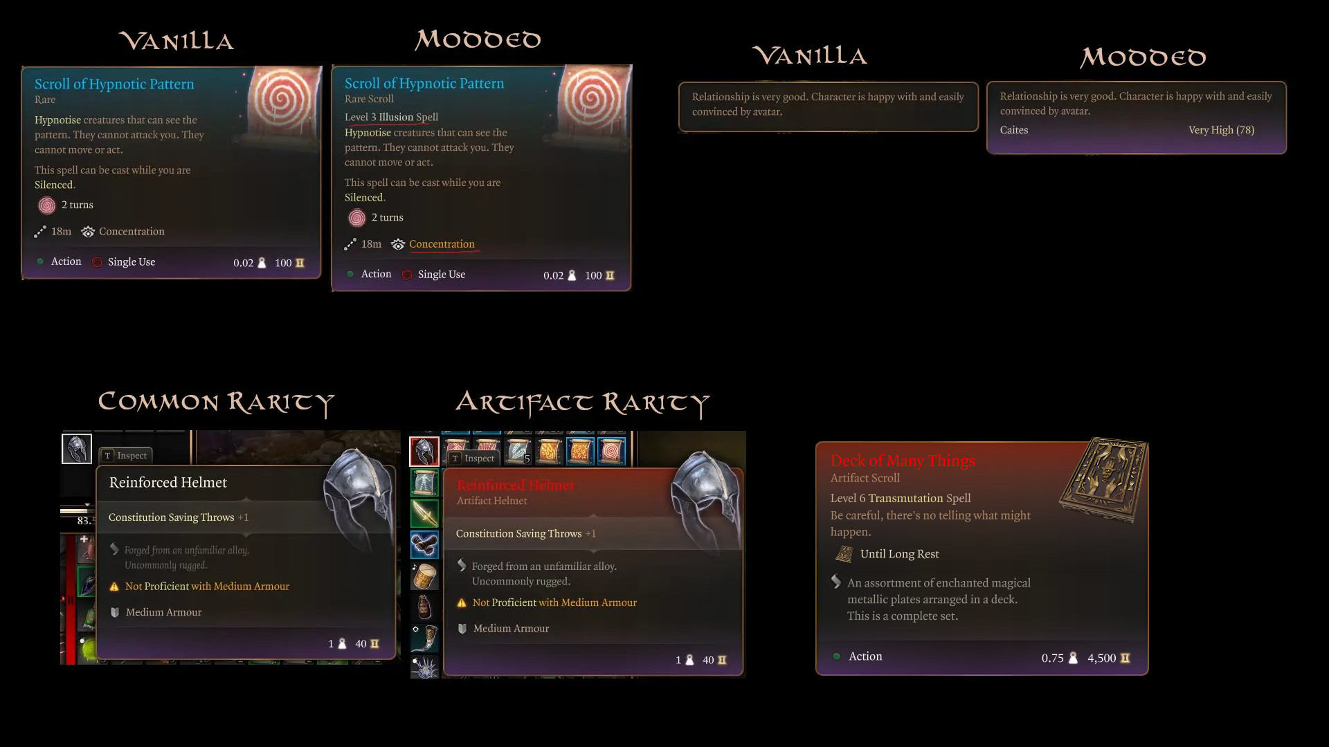 1. 你是否想知道同伴的好感度隐藏在第3个角色面板中?我也一样。为此,在总结的好感度条的提示信息中添加了数值评分(无需查看角色面板中的第三个标签)。