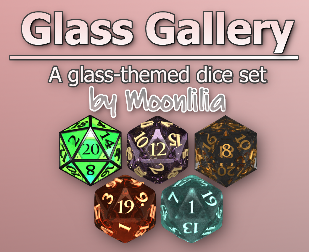 玻璃画廊是一系列围绕玻璃主题设计的骰子皮肤。每个皮肤都独立而独特,同时保持了玻璃这一简单概念作为共同点。此外,所有皮肤的设计都考虑到了对比度,以确保数字清晰可读。整套皮肤与其他骰子皮肤完全兼容!以下是每种骰子皮肤的简要描述: