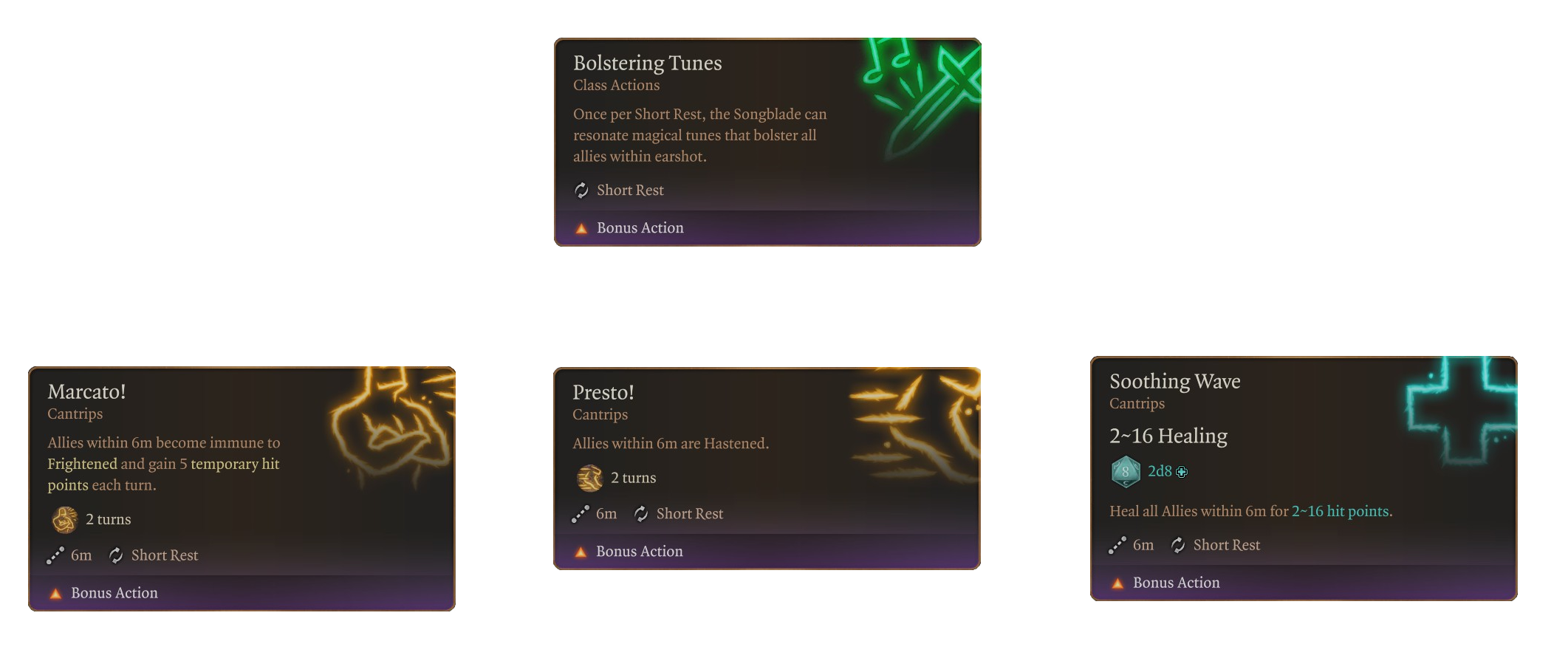 这是一款专为吟游诗人设计的魔法剑,它擅长音乐和魔法。似乎被它的前任主人遗弃了,希望能在一些新人才手中找到艺术与冒险的机会。歌剑是你的吟游诗人在整个战役中可以依赖的武器,有机会随着角色的成长进行升级和扩展。