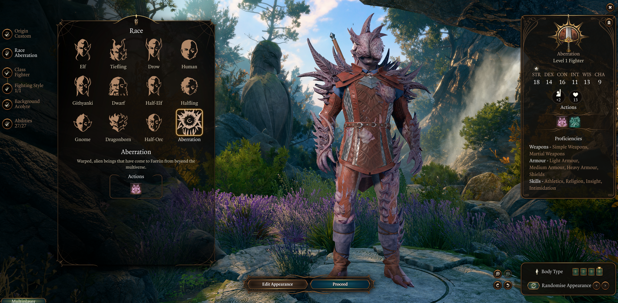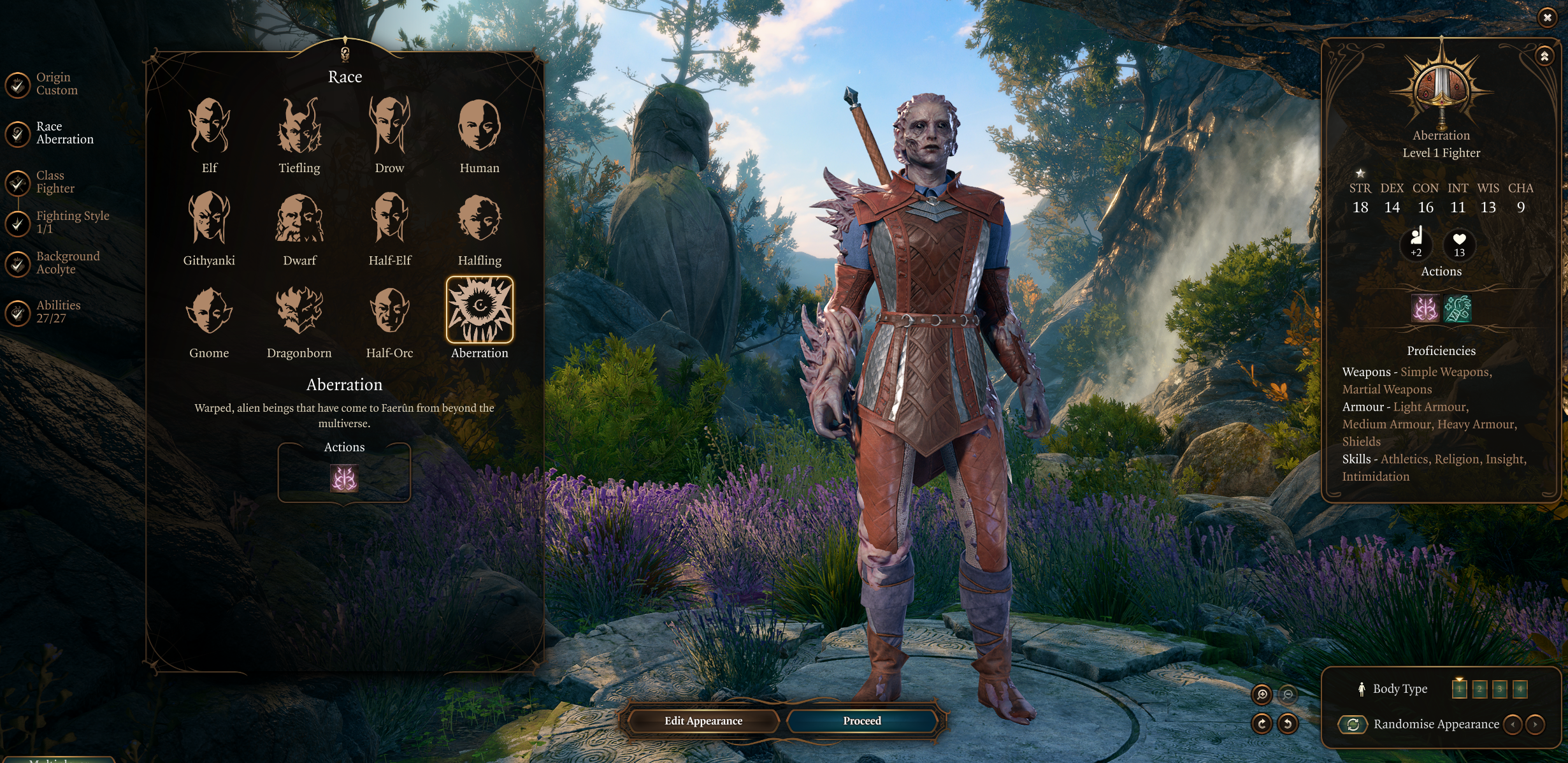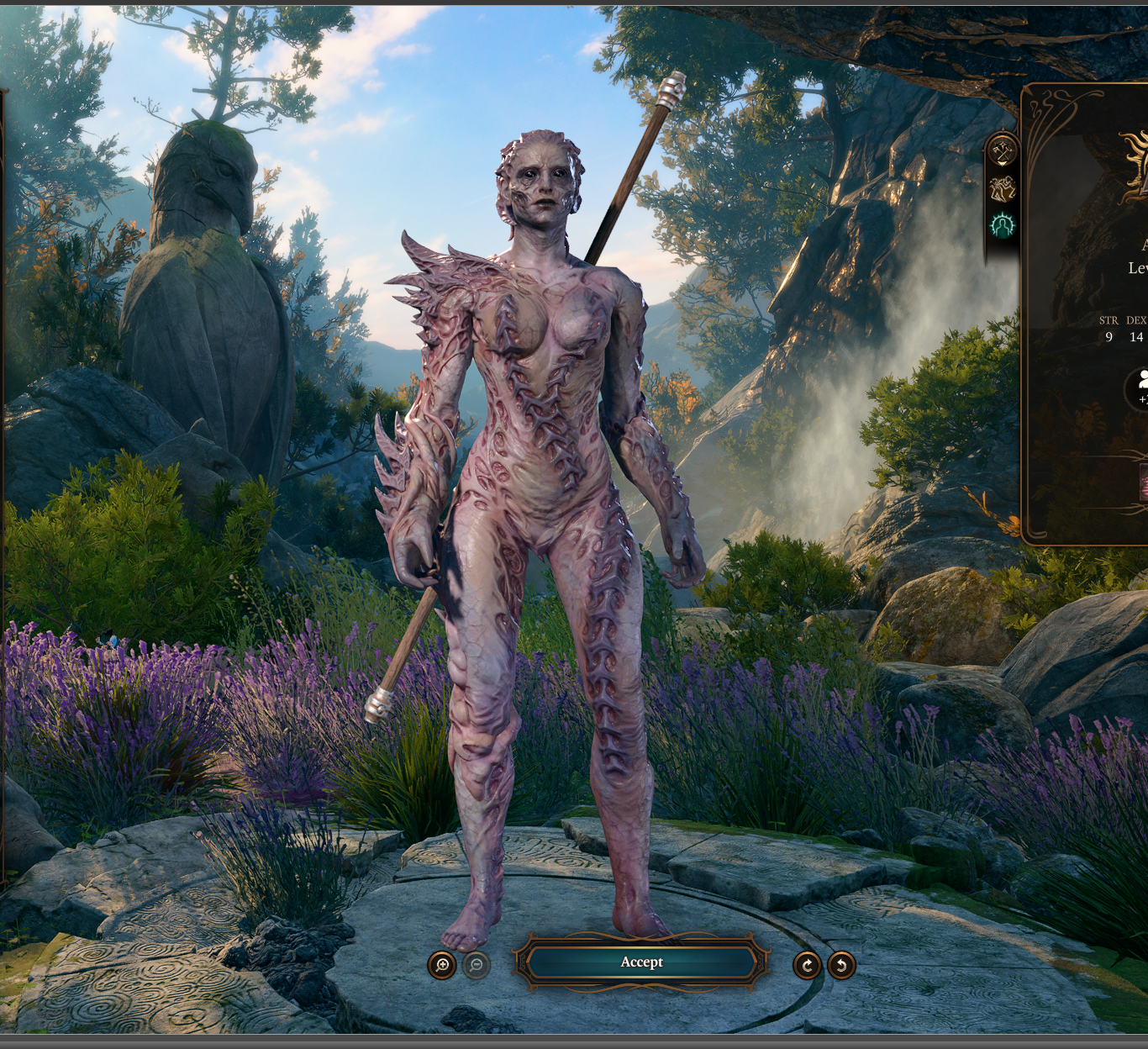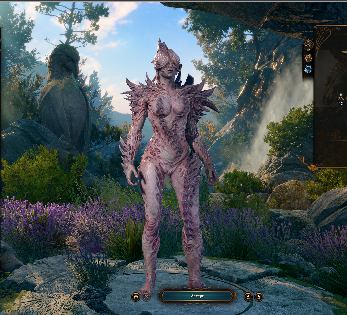 *大多数护甲与该种族搭配良好。如果你想不穿任何衣物但仍然显示有护甲,请脱下营地服装并切换到营地服装视图,这样你将处于裸体状态*