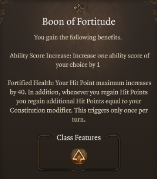 – 当你在每一轮首次治疗时,你获得额外的生命值等于你的体质调整值。