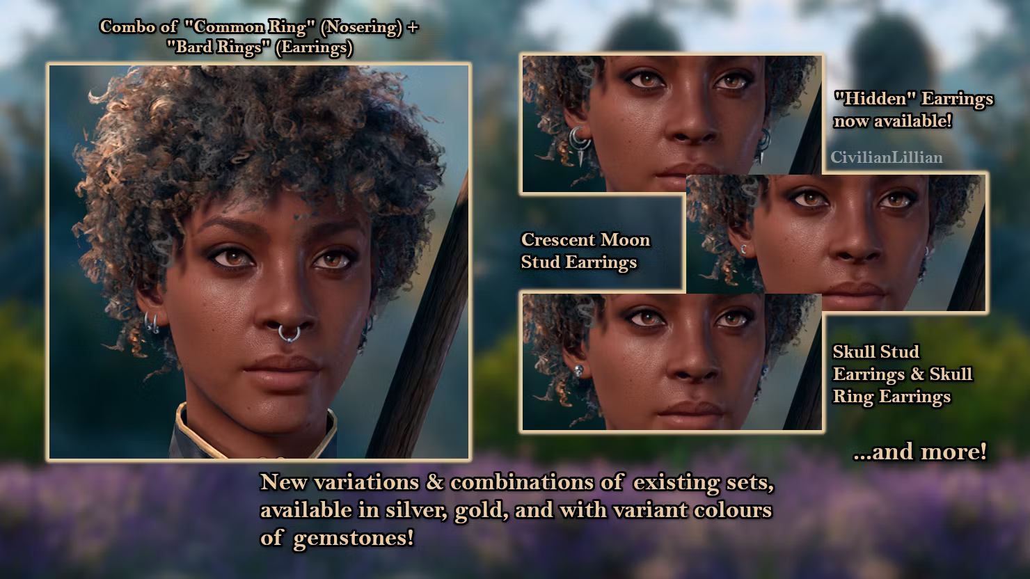 - 额外的穿刺饰品组合套装 + 将之前隐藏的穿刺饰品通过自定义组合和黄金变体使其可用