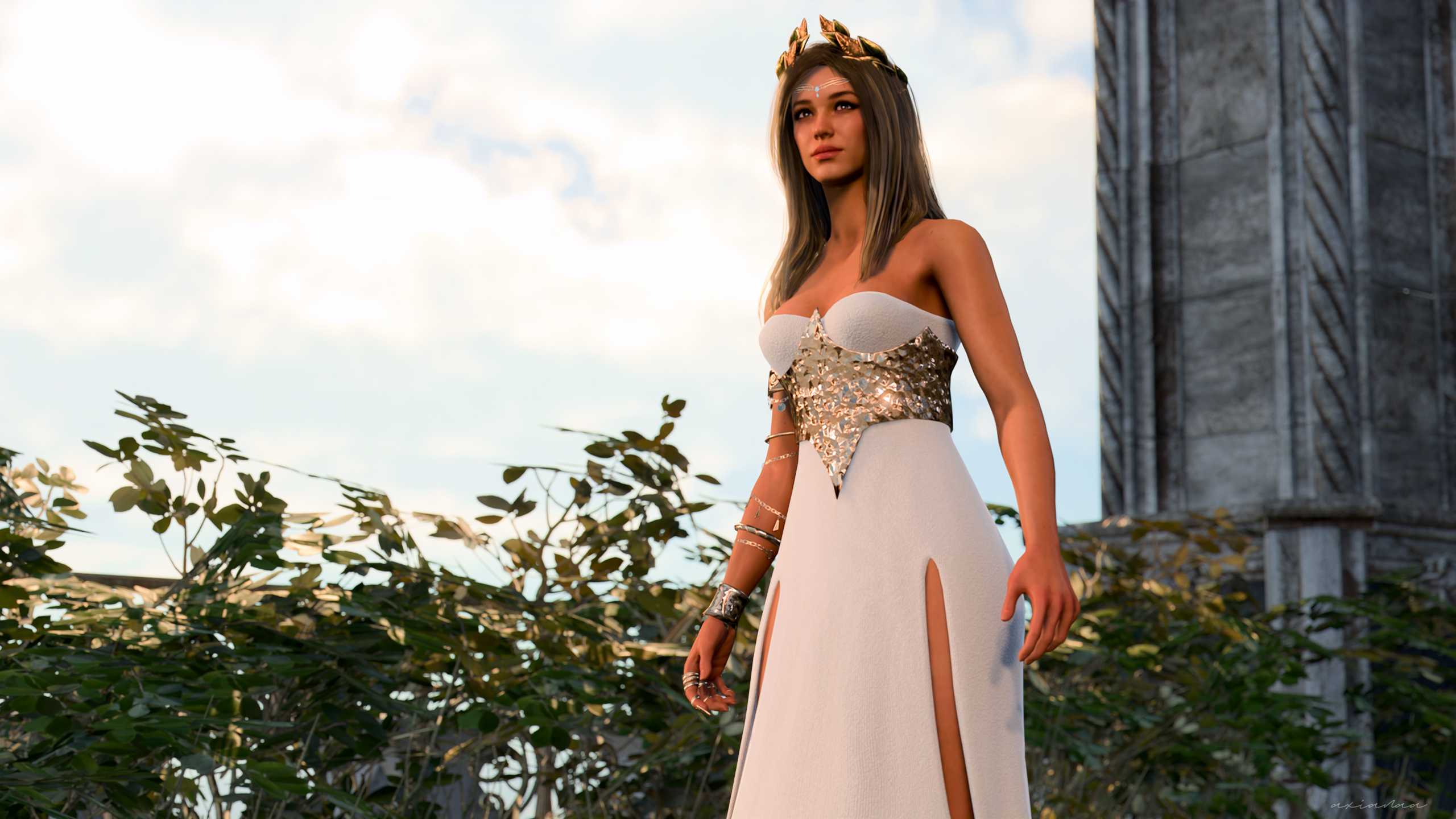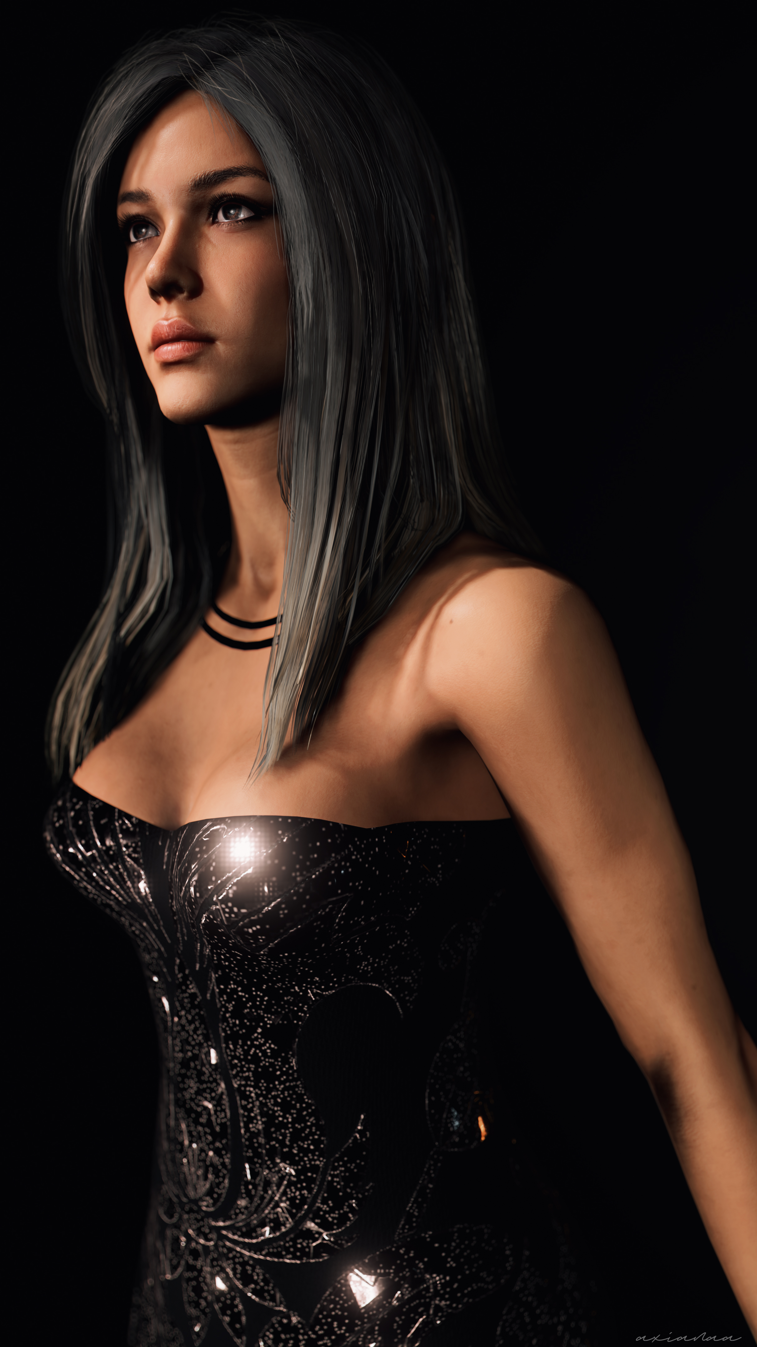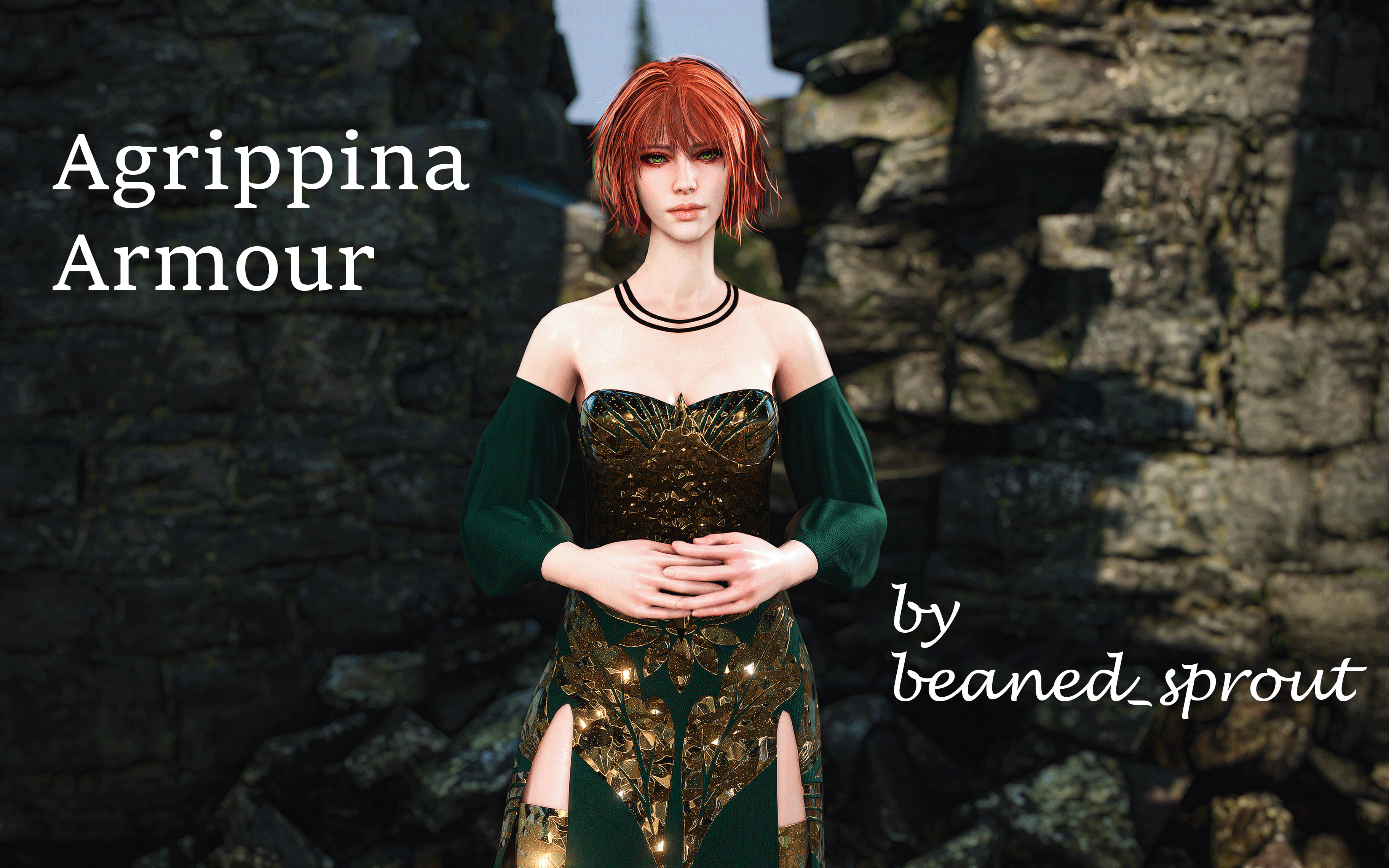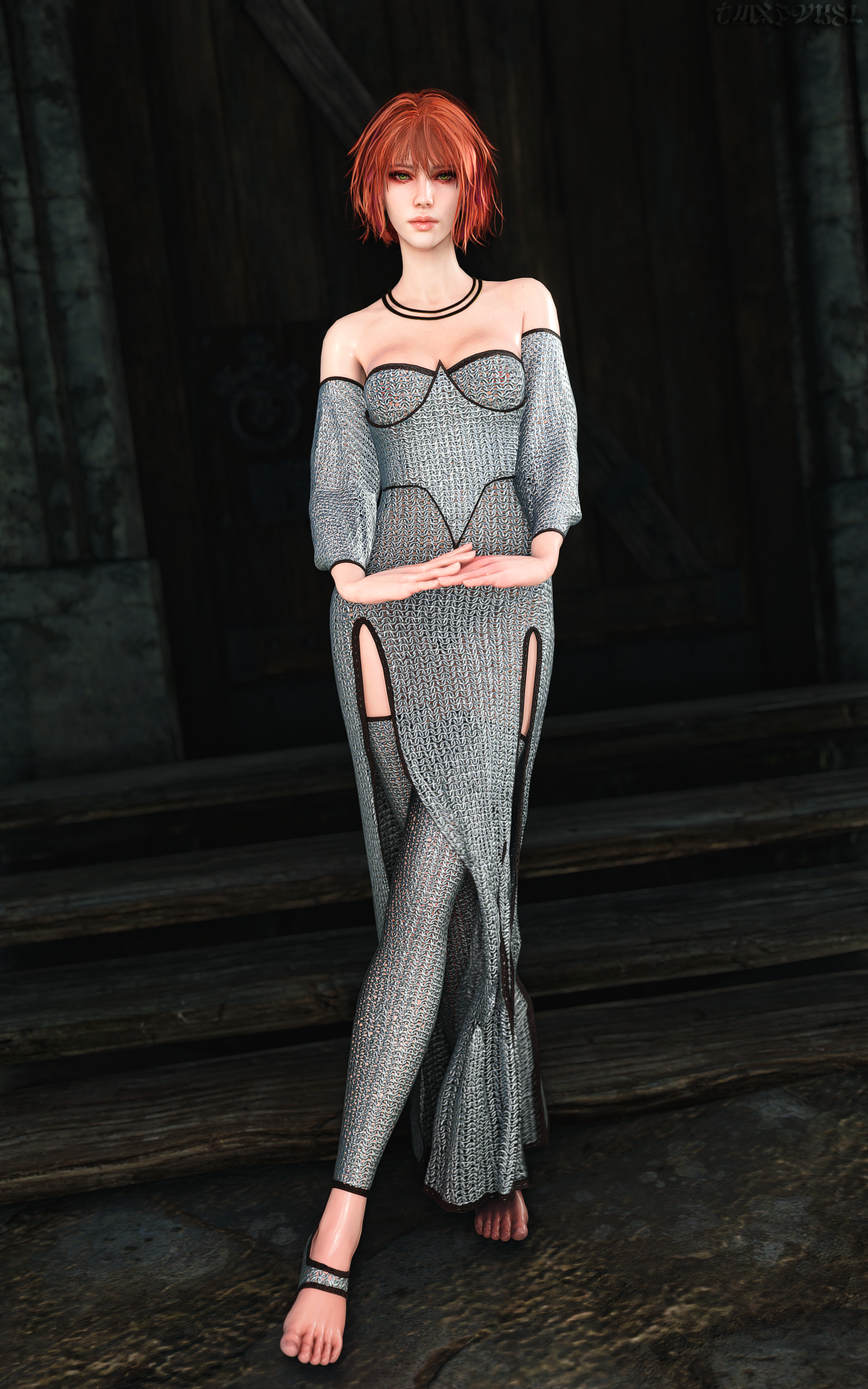 最初只是一个简单的裙子,最终变成了一个包含裙子、袖子、项链、紧身胸衣和腿部/脚部包裹物的完全模块化盔甲套装(BT1),每个部分都有四种材质变体(除了项链只有两种)。几乎所有物品都可以染色。