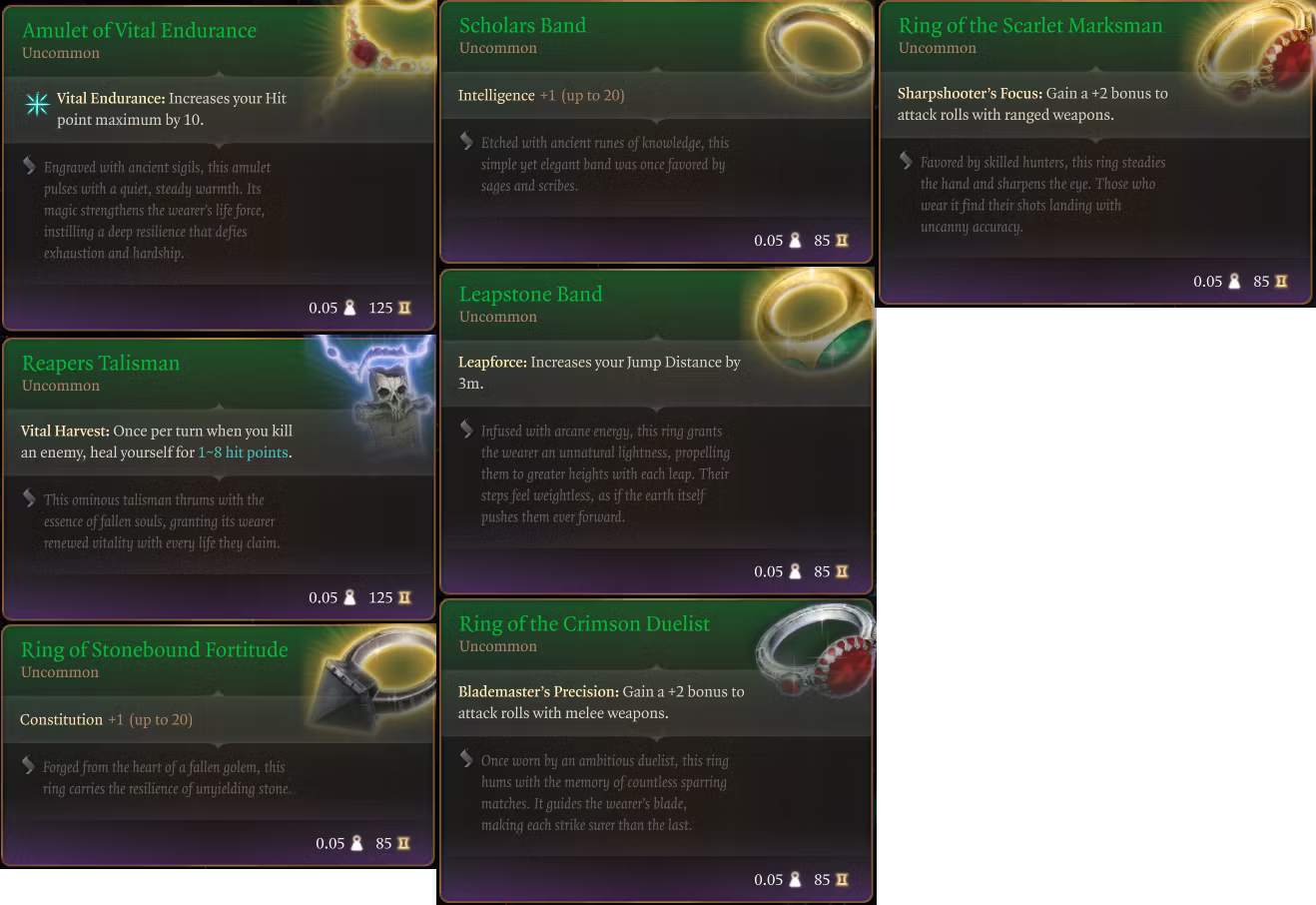 所有护身符和戒指都可以在教程宝箱中获得,并且可以在游戏中购买或找到。(位置)