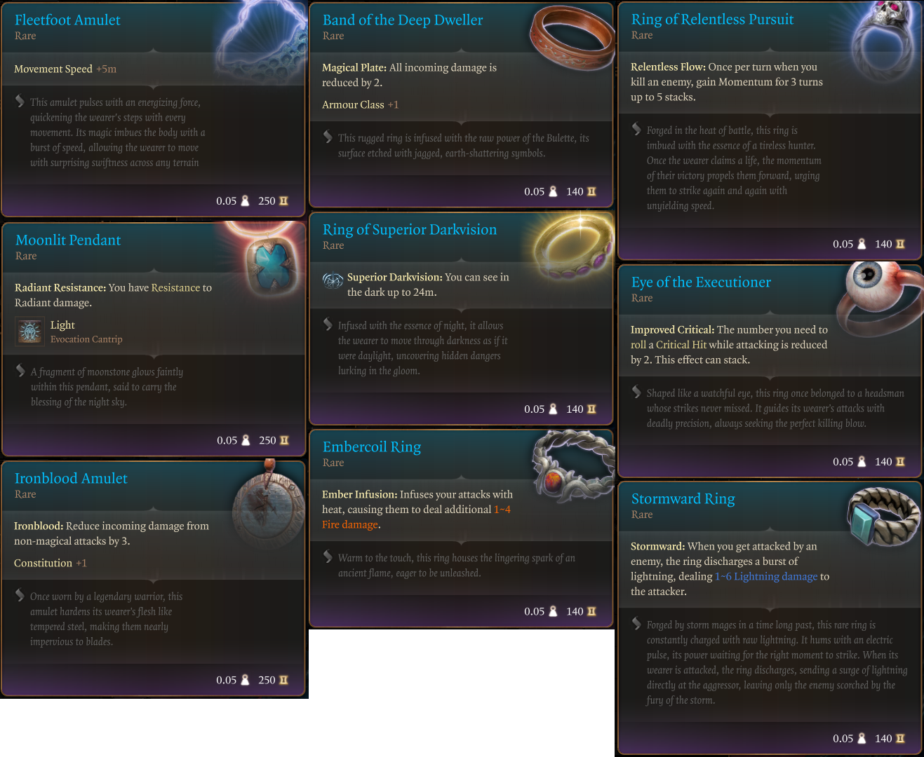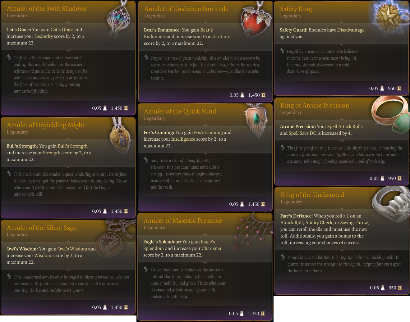 所有护身符和戒指都可以在教程宝箱中获得,并且可以在游戏中购买或找到。(位置)