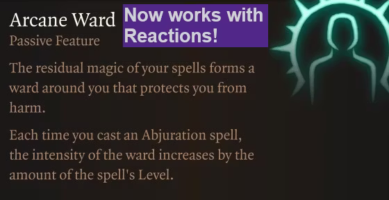 这似乎可以正确地在选择反应时增加 Arcane Ward 的充能次数。基础游戏中的 Counterspell 似乎能够正常工作以增加 Arcane Ward 的充能。