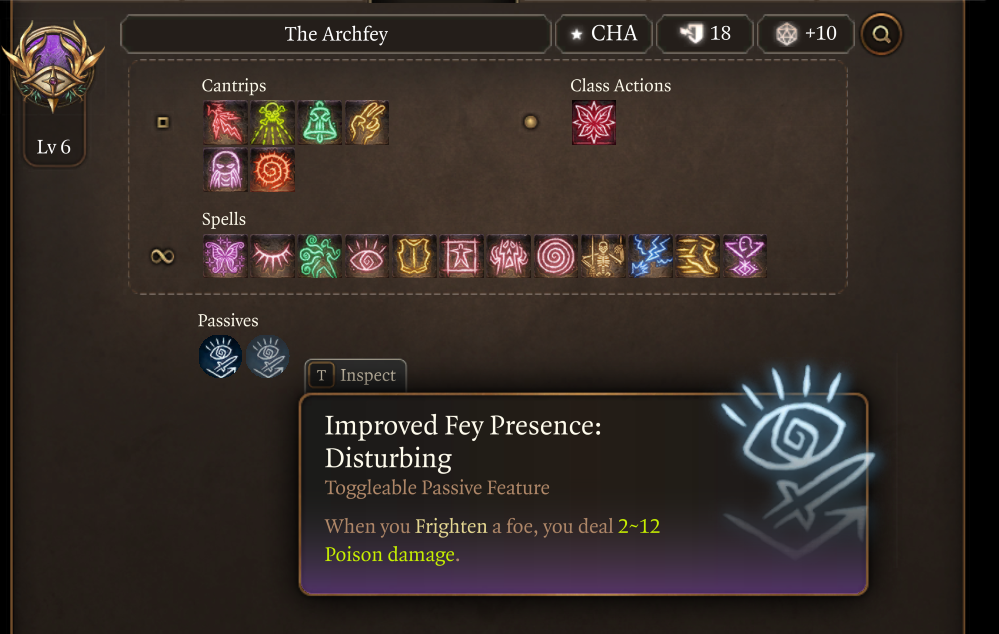 添加了新的6级被动技能,当对敌人施加魅惑或恐惧状态时造成心灵伤害或中毒伤害。