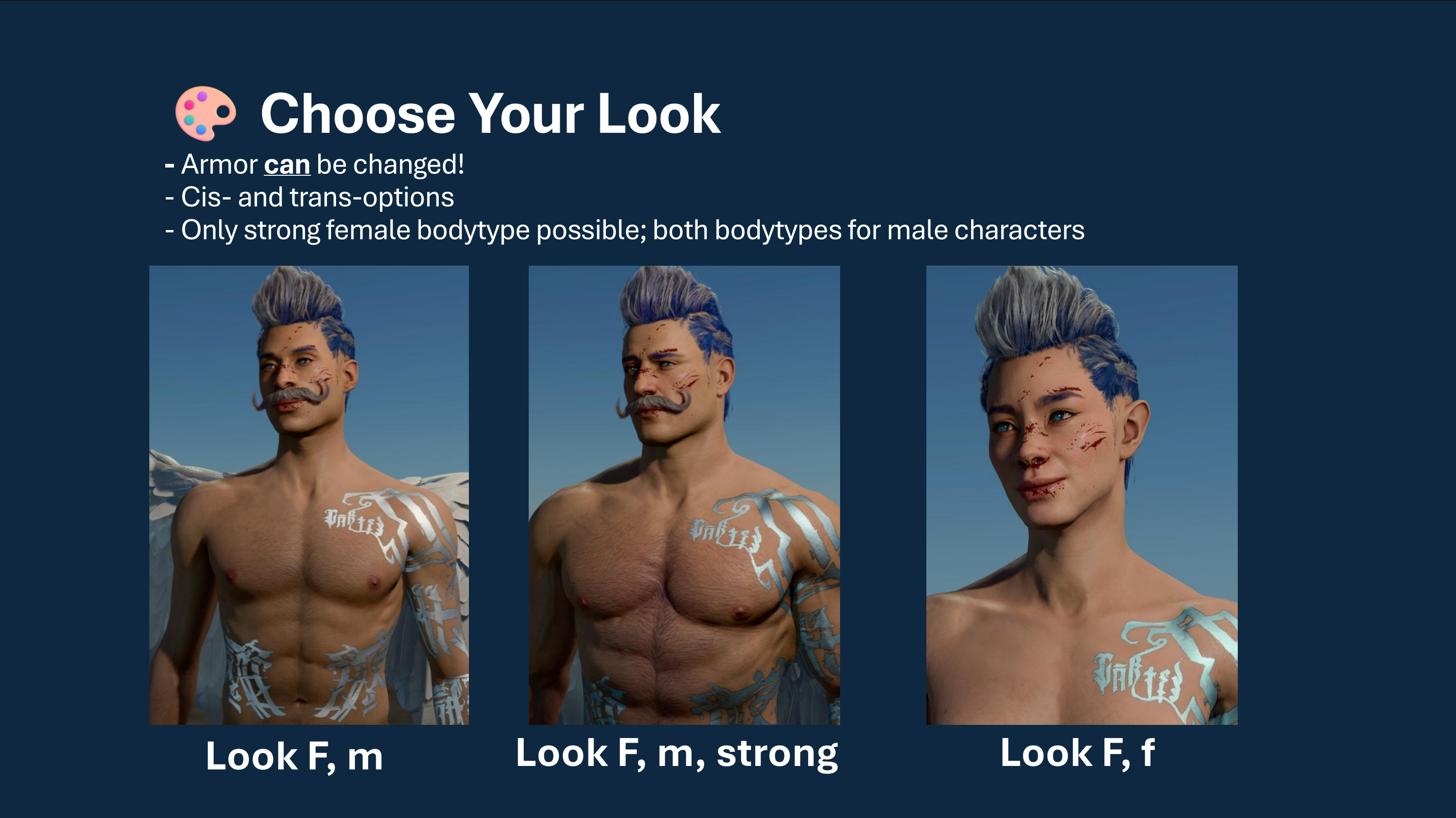 💡 8 种保留你自己的护甲的外观,男性和女性选项,顺性别和跨性别选项