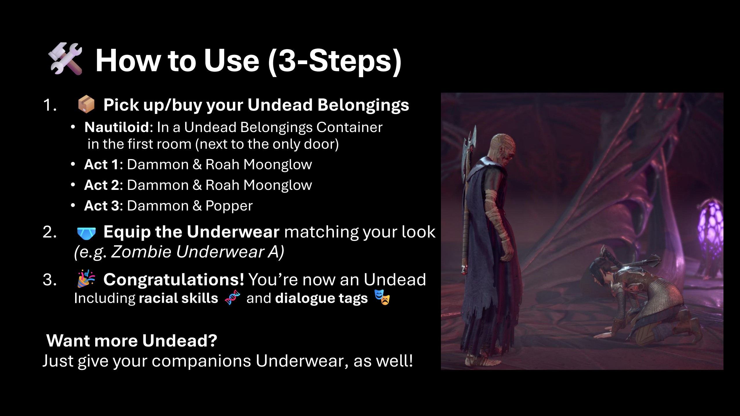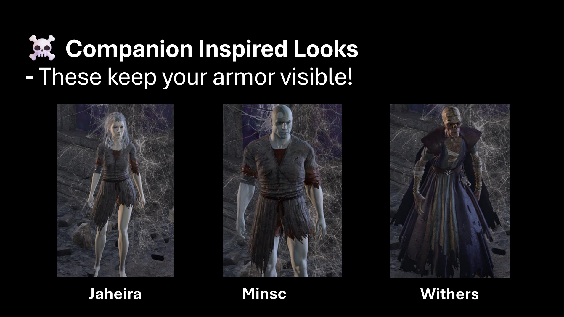 - 不死同伴(Lae’zel、Shadowheart、Astarion等,包括Withers)