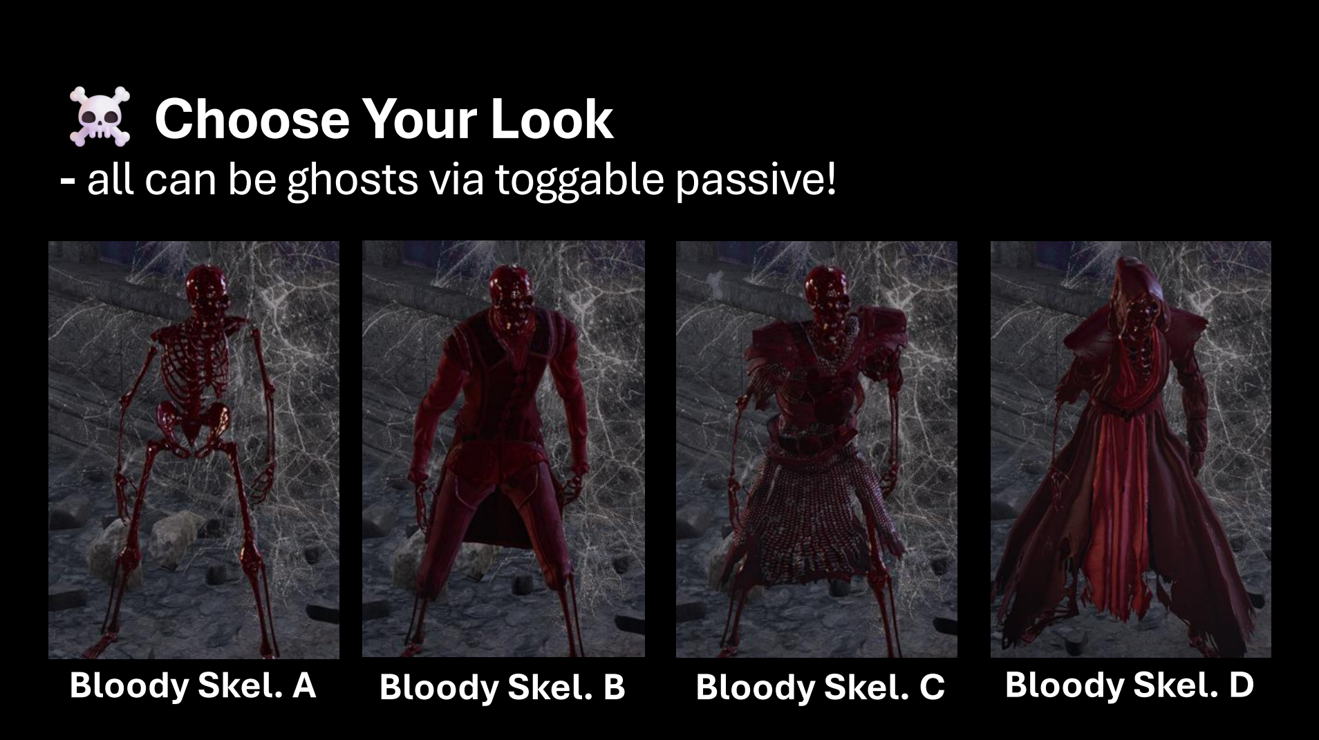 - 装备特殊内裤以变形为骷髅(标准和血腥A-D)