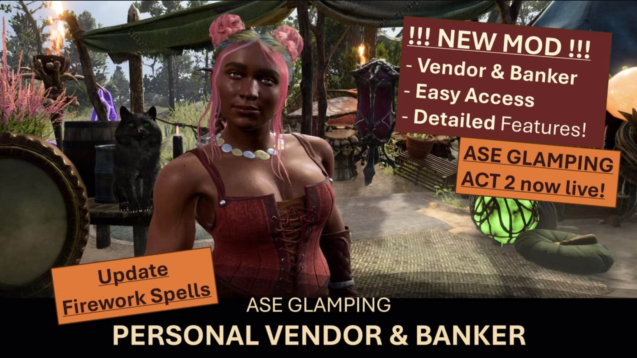 这个舒适的附加组件为 ASE Glamping 引入了一个可召唤的小矮人吟游诗人,她会将贸易、银行和露营的舒适带到你身边的每一个角落。