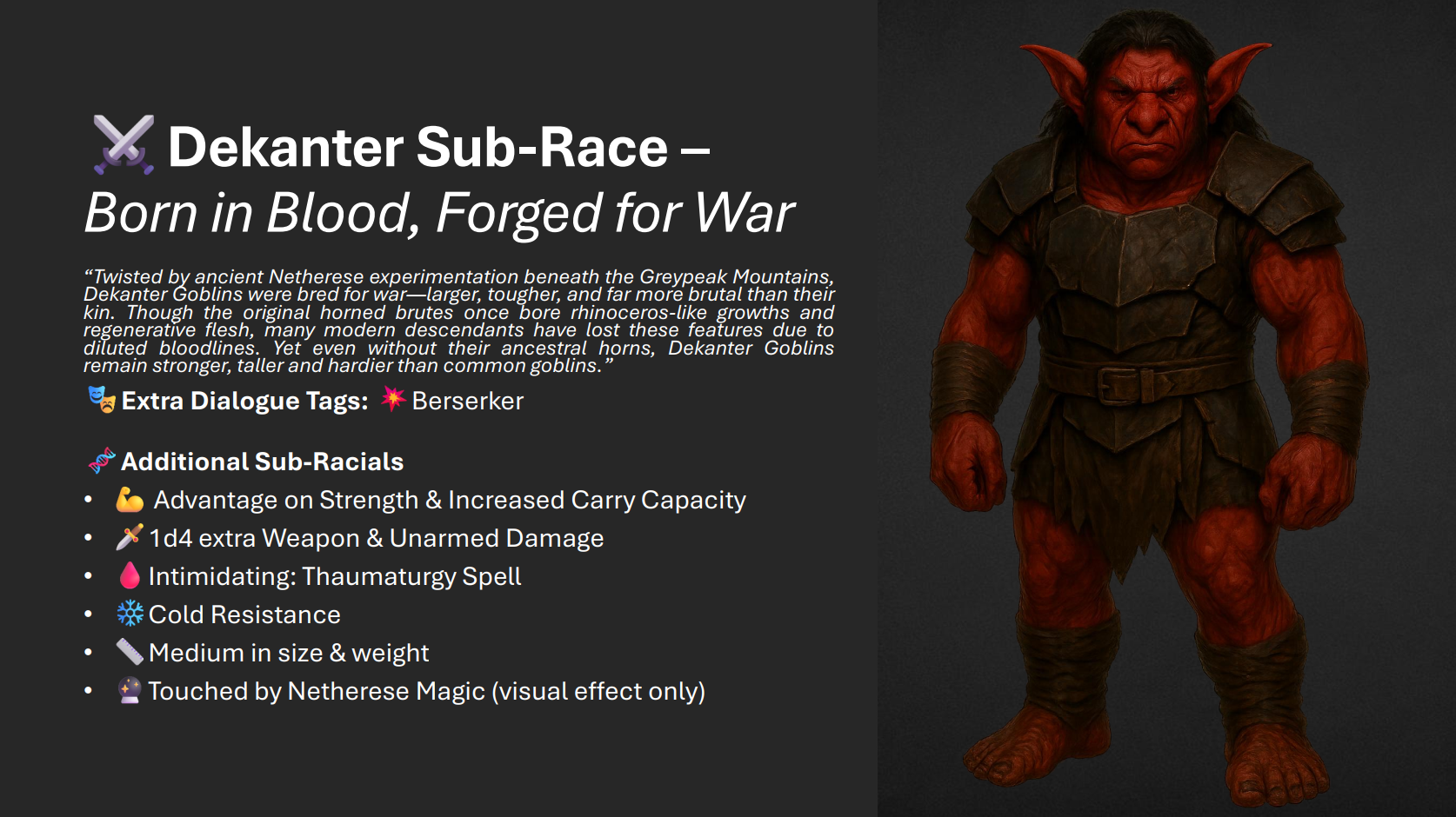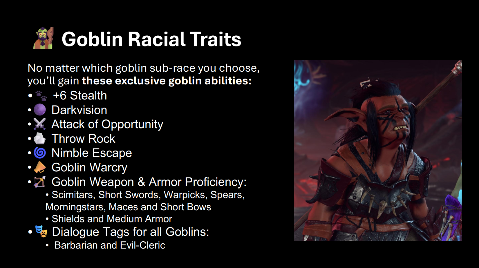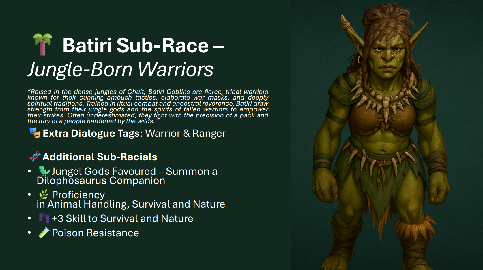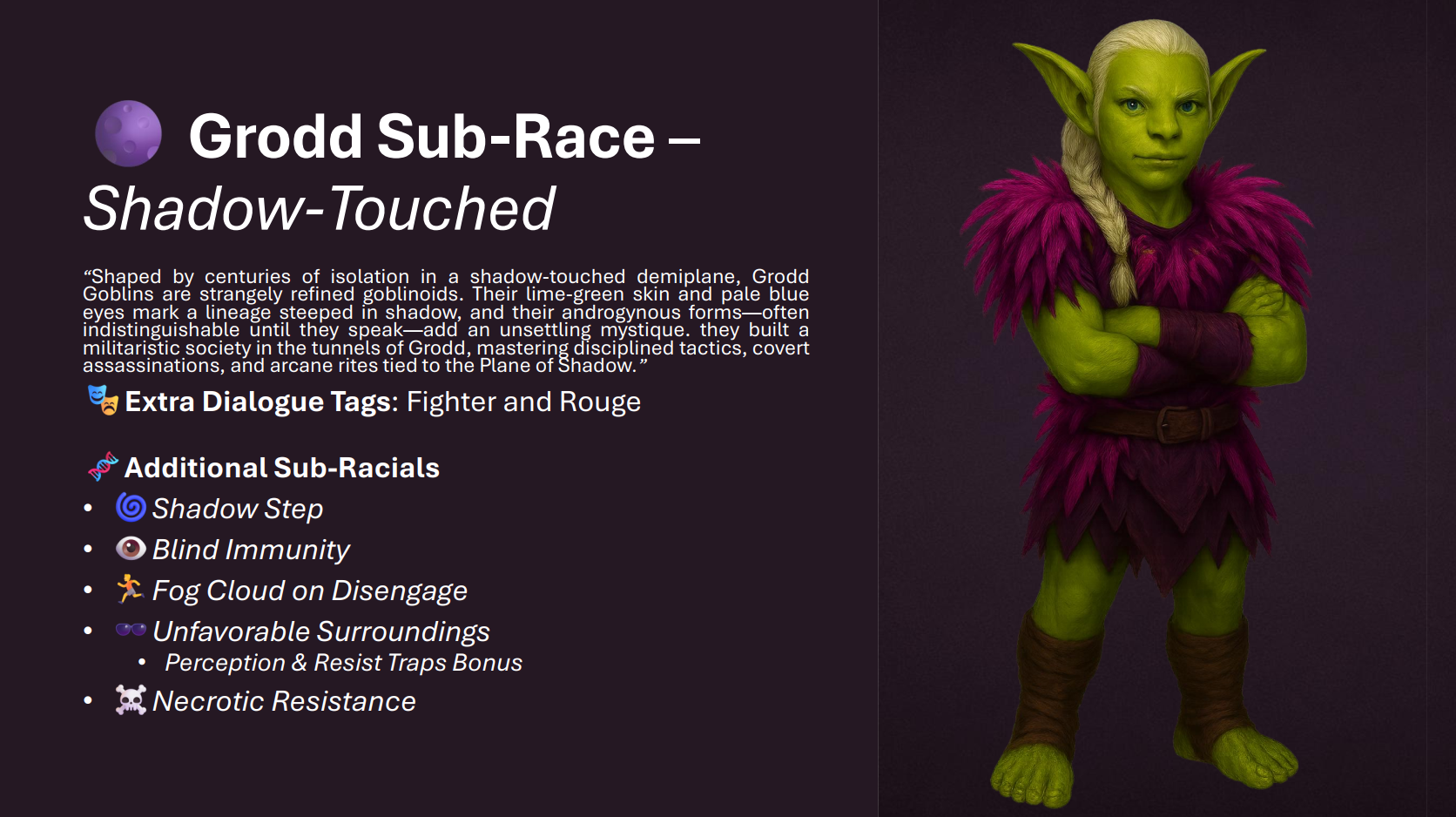 - 解锁每个亚种族主题的种族被动技能、技能和对话标签