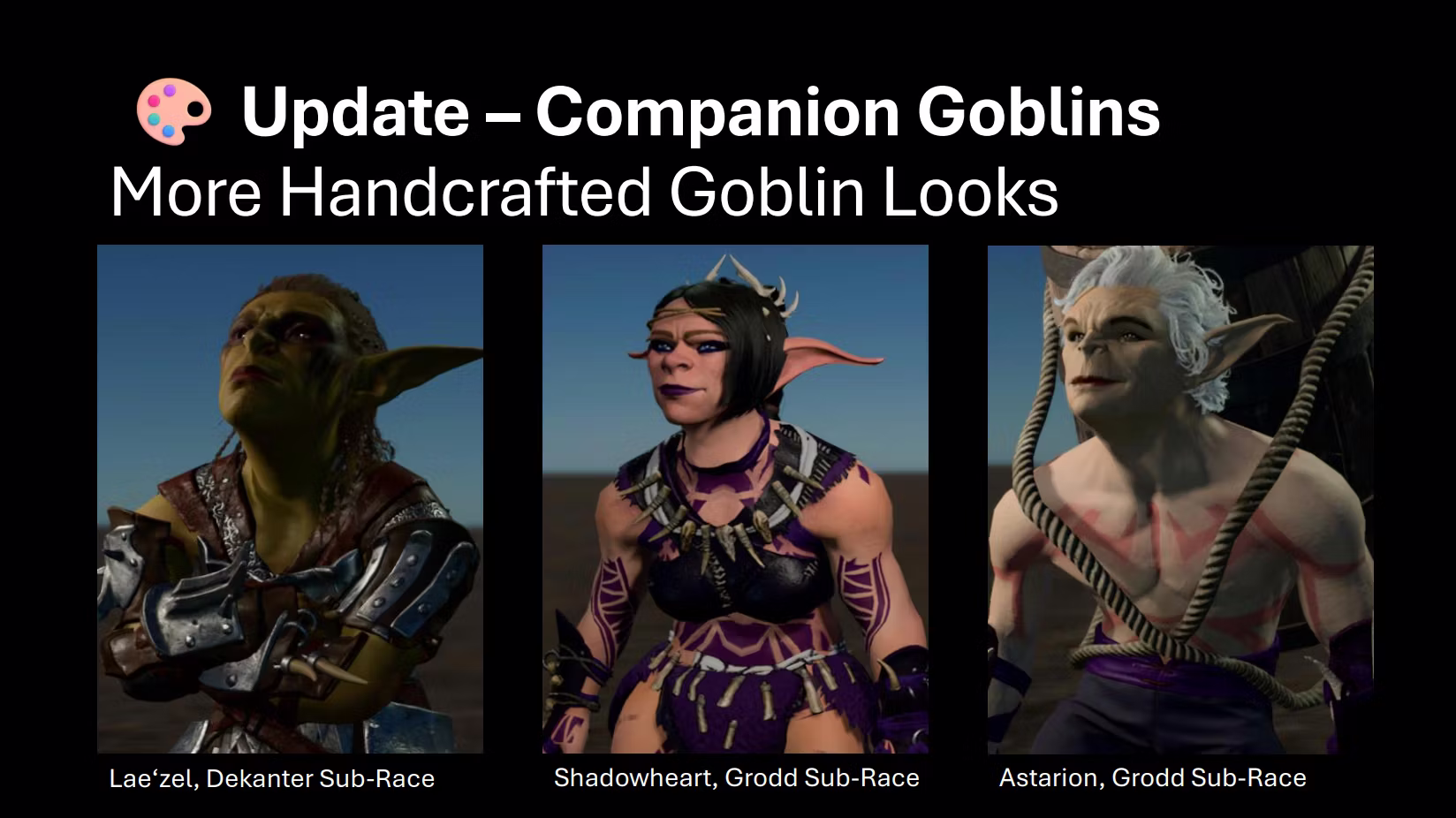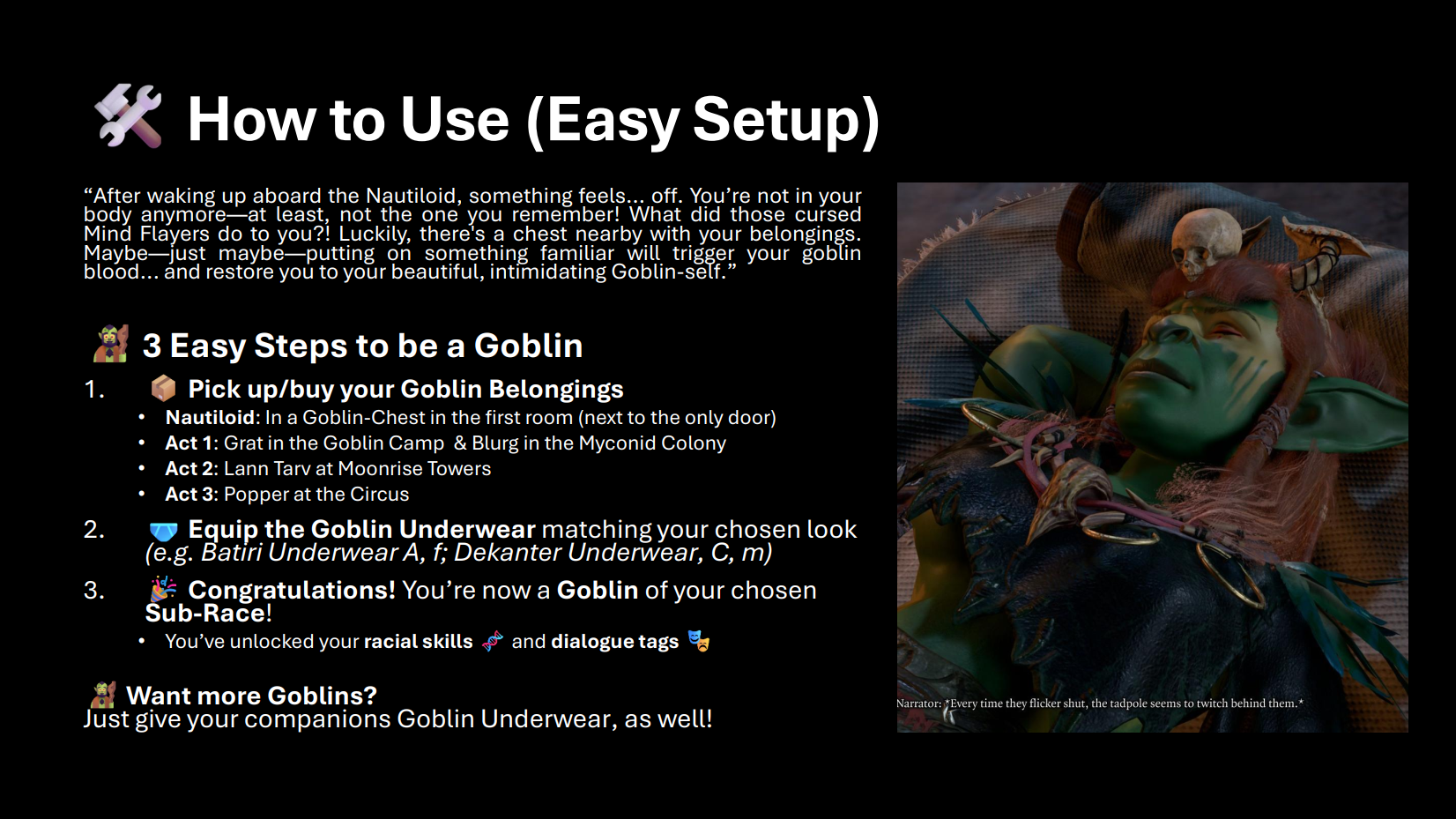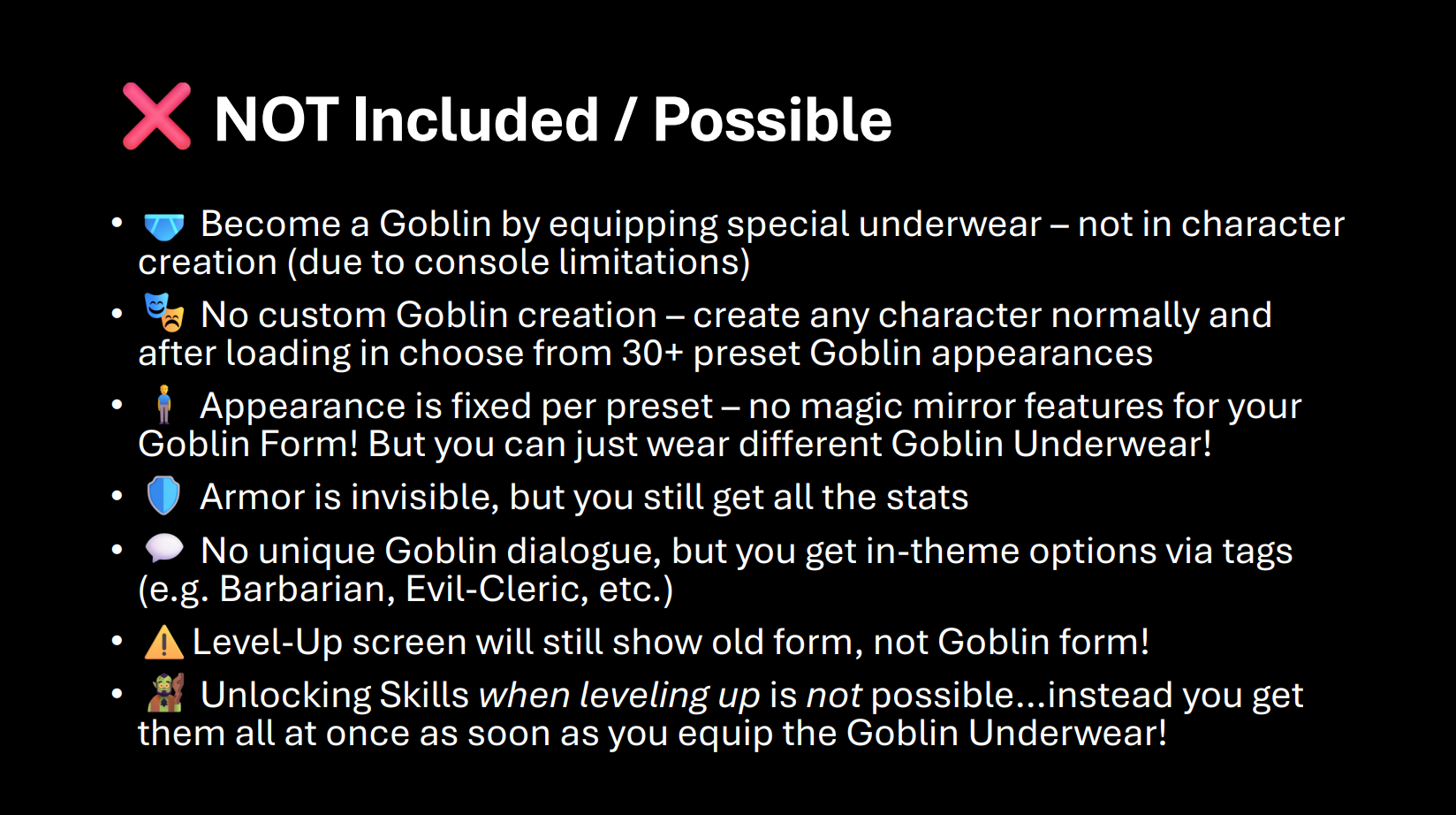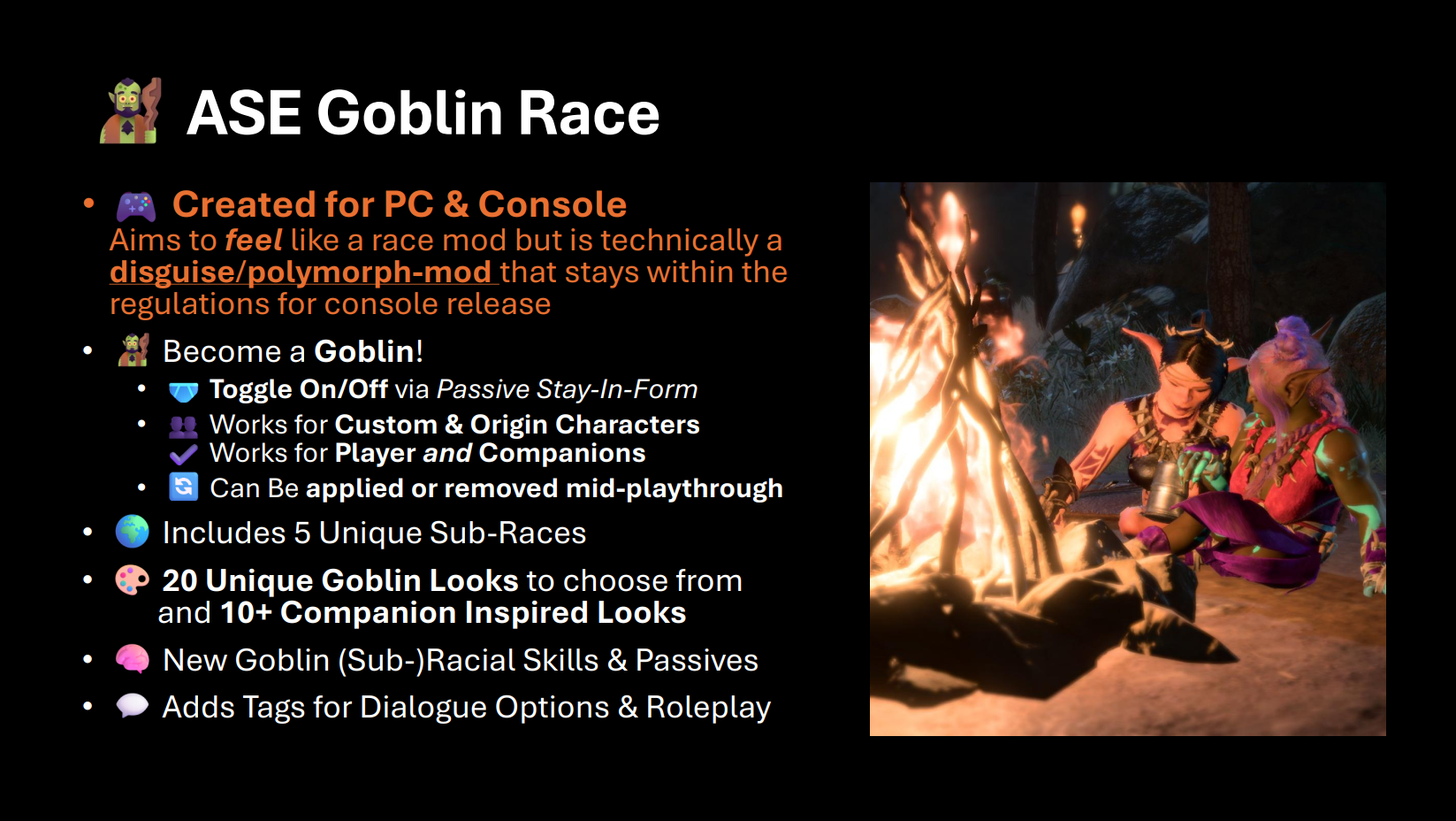 仅基于伪装的种族模组可以在主机上运行。每个模组必须由 Larian 手动测试,这可能需要数月时间。提交后,无法重新提交模组,因此我力求最稳定的版本。我会在有任何变化时发布状态更新。