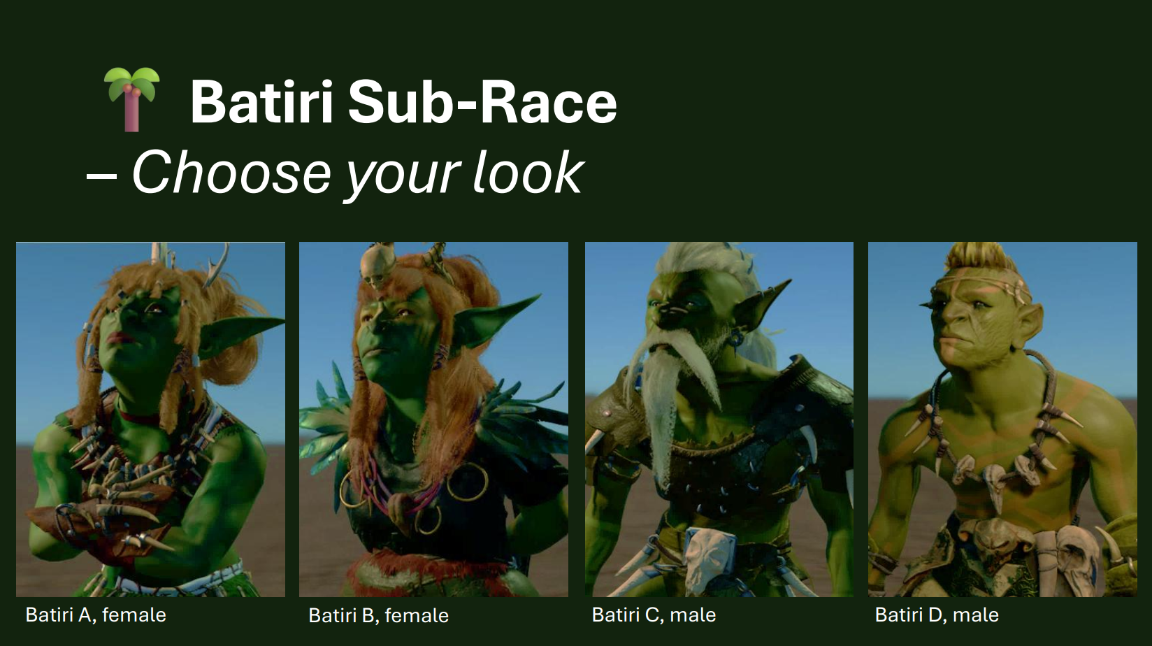 - 选择30+种独特的妖精外观,涵盖5个亚种族(Firecask, Batiri, Dekanter, Grodd, Nilbog)