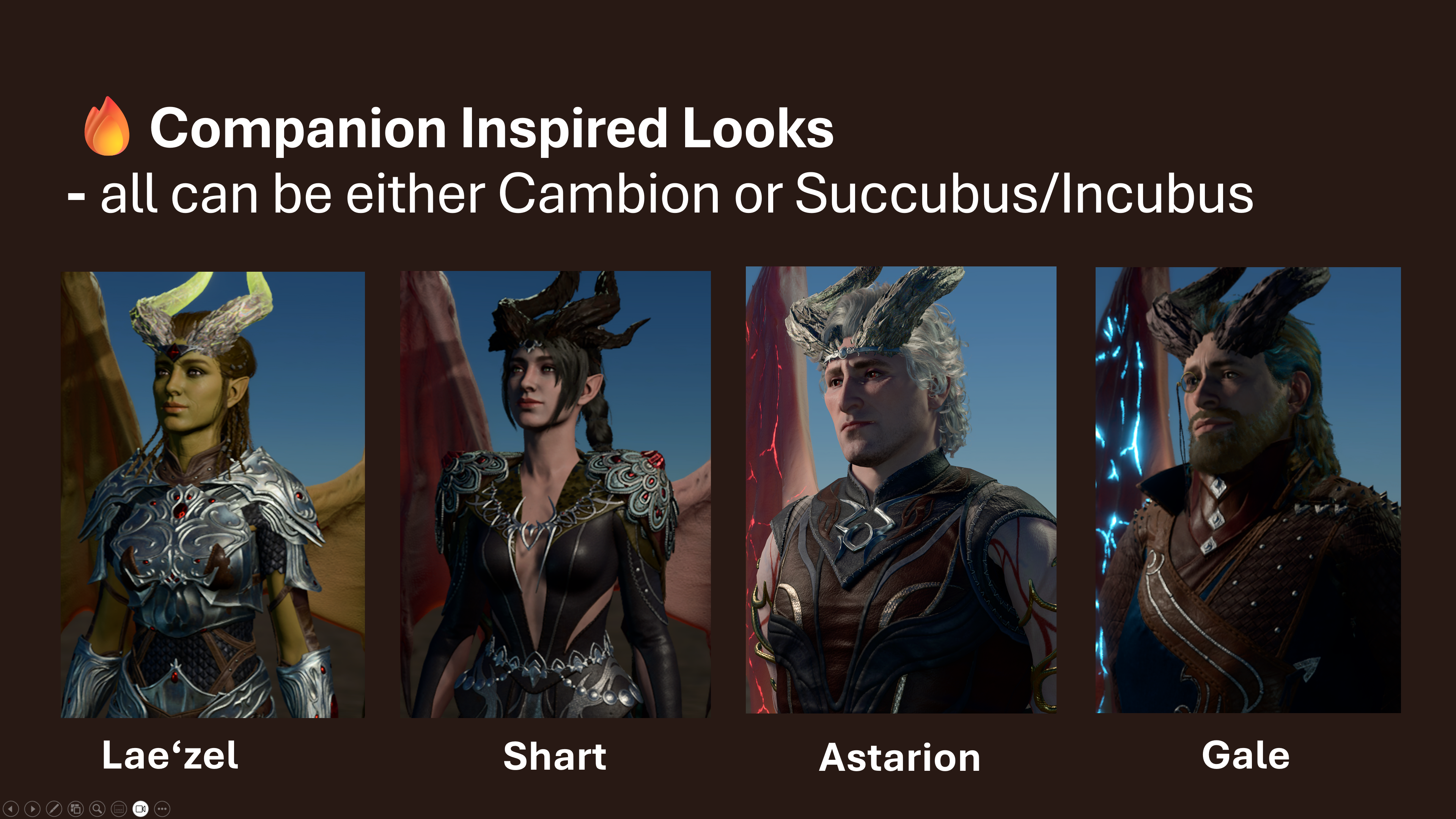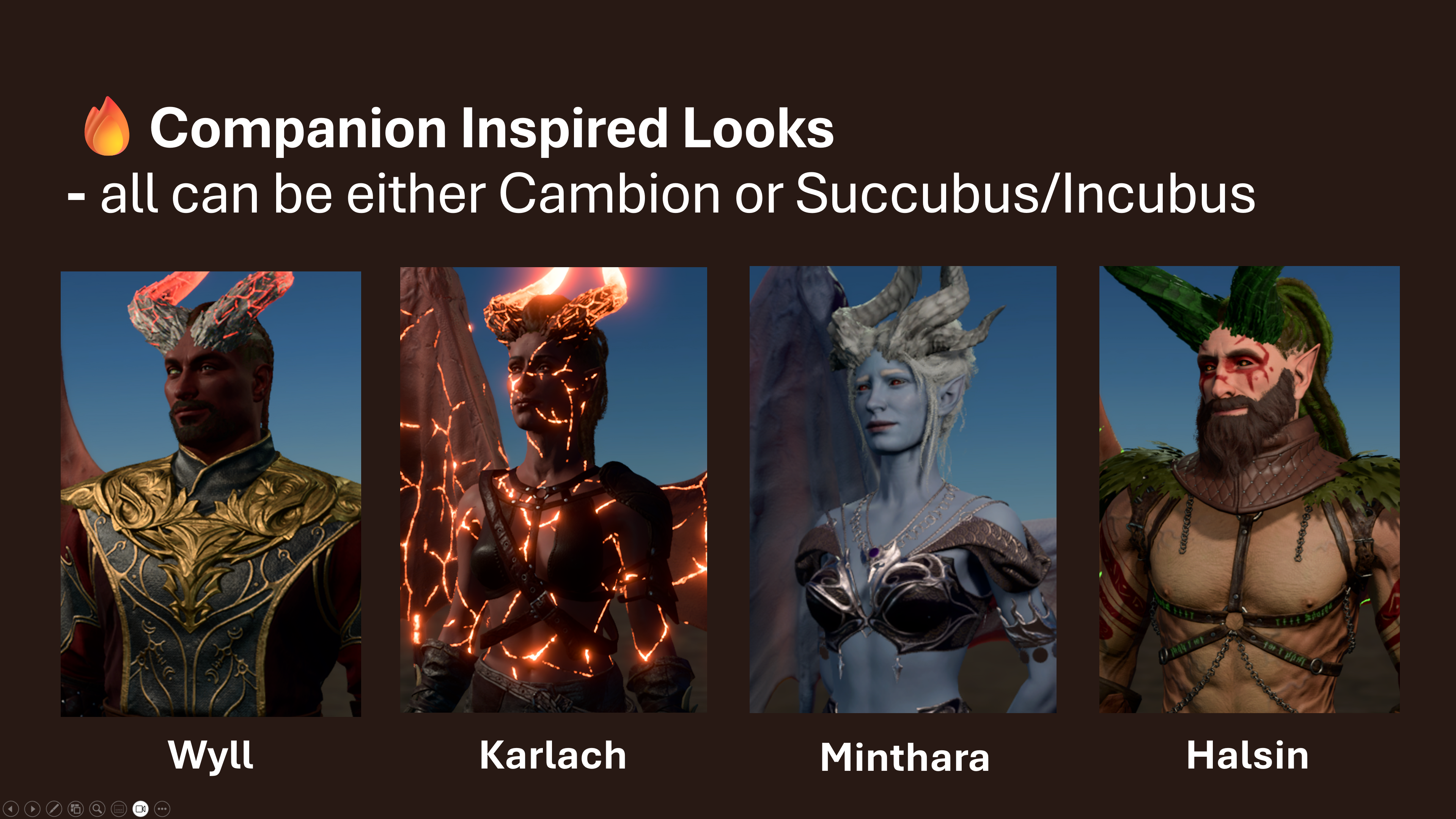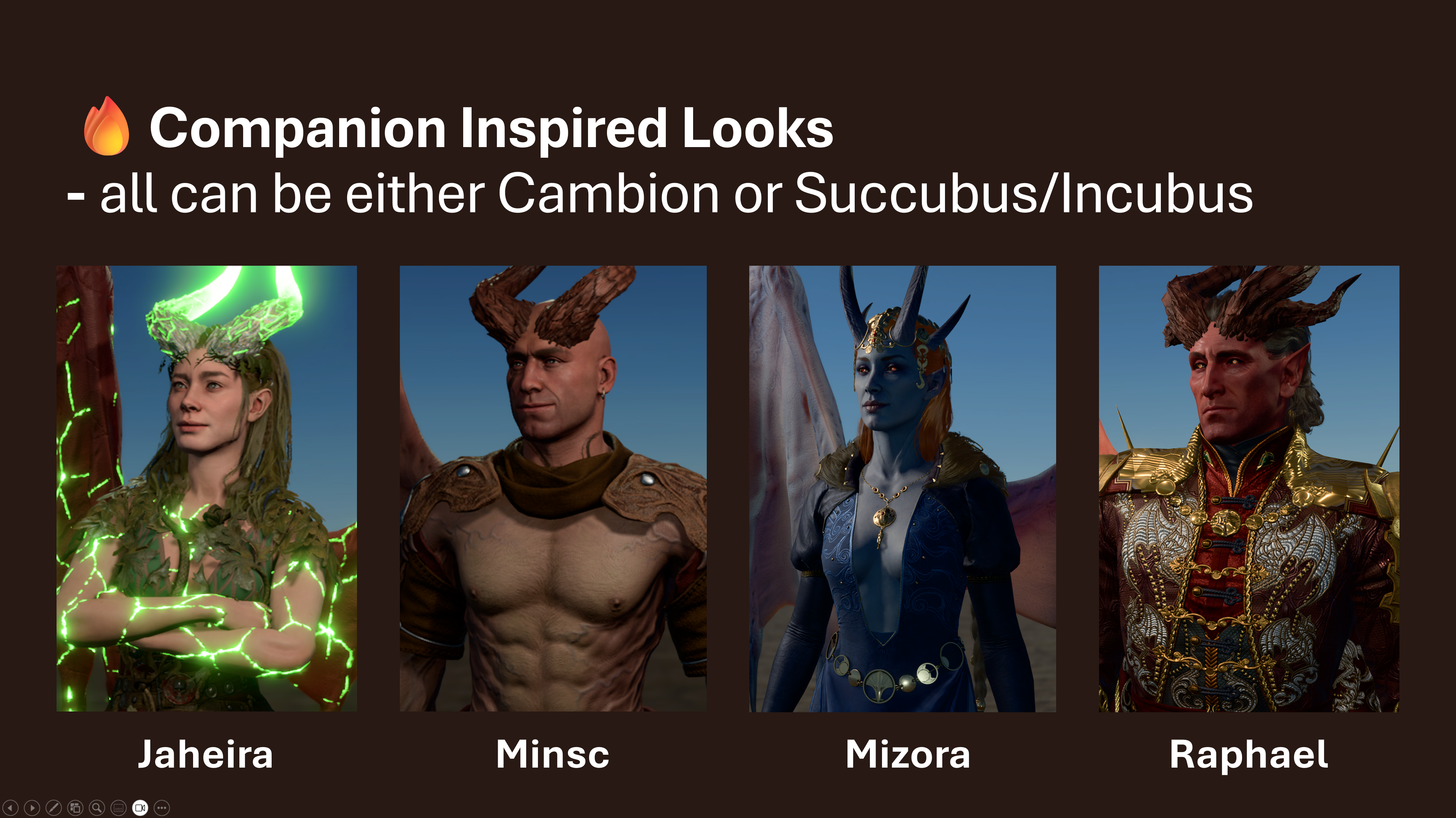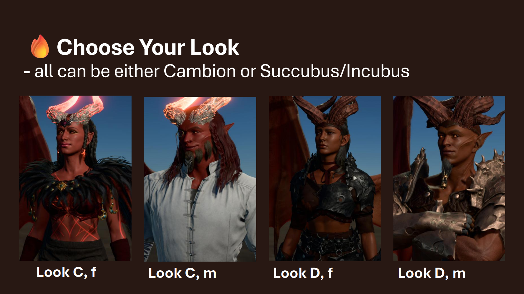 这个模组添加了两个完全可玩的恶魔亚种——半魔人(Cambion)和魅魔/美杜莎(Succubus/Incubus),使用一种友好的伪装系统。虽然技术上不是种族模组(由于控制台限制),但它感觉像一个种族模组:自定义外观、肖像、被动技能、种族法术和对话风味标签。