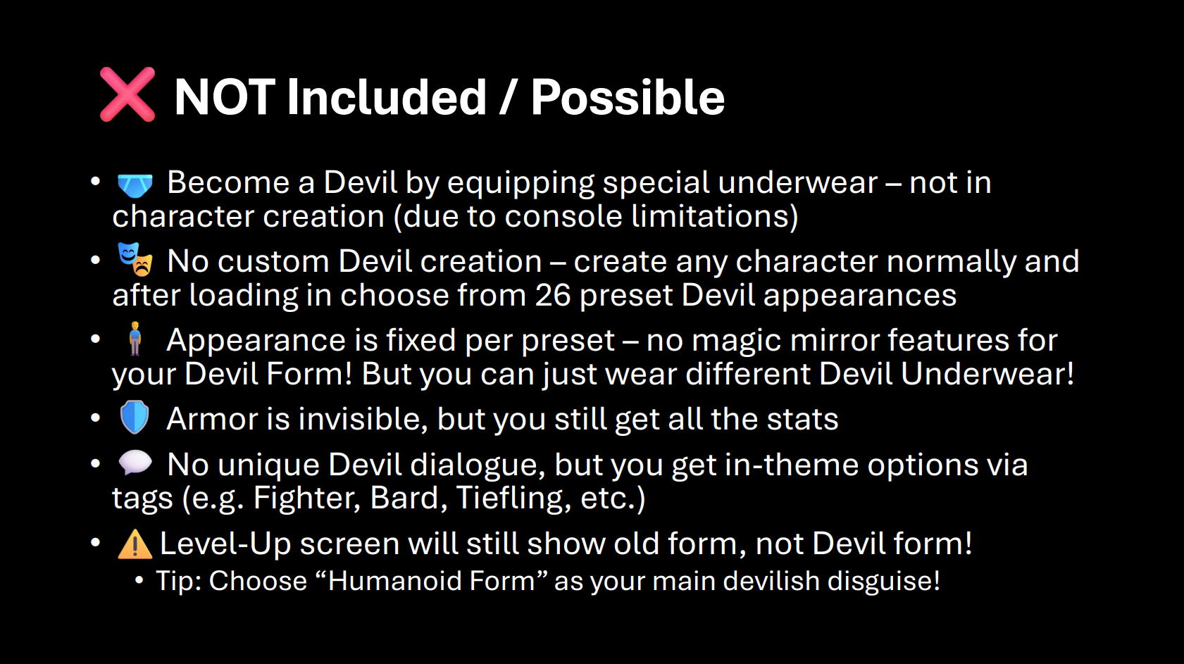 只有基于伪装的种族模组才能在控制台上运行。每个模组必须由 Larian 手动测试,这可能需要数月时间。提交后,模组不能重新提交,因此我力求最稳定的版本。