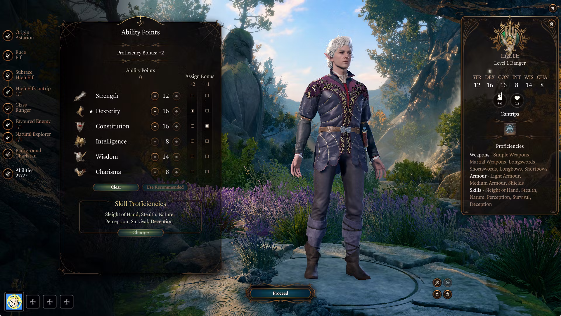 Astarion 是一名游侠,其属性已更新为:12/16/16/8/14/8。当然,这些可以通过重新分配技能点或在角色创建时进行更改(如果你以 Astarion 的身份游玩的话)。