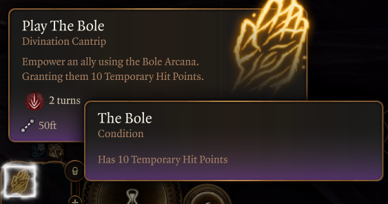 - 命运弯曲:给予盟友+1技能检定加成。- 动作,集中。