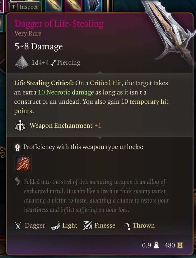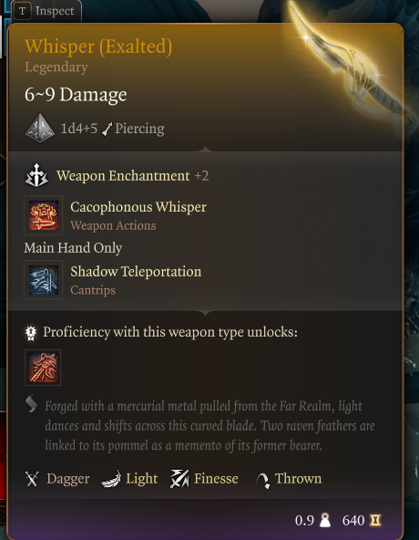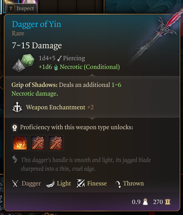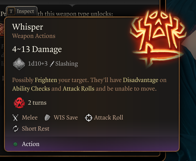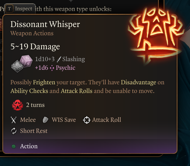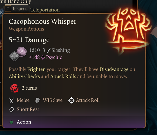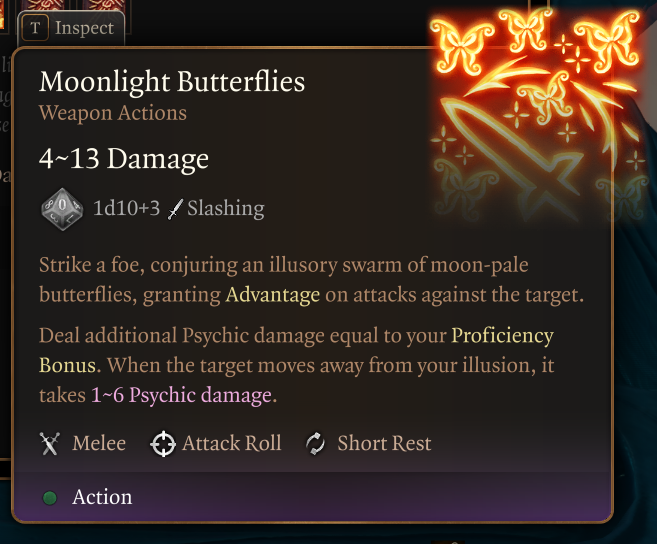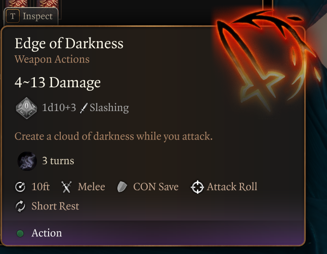 - 阴刀。具有黑暗边缘动作和腐蚀伤害。