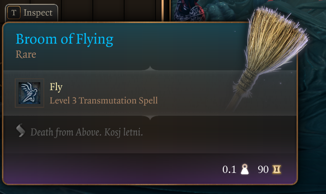 - 飞行扫帚。你不能骑着它,但可以用来飞行。