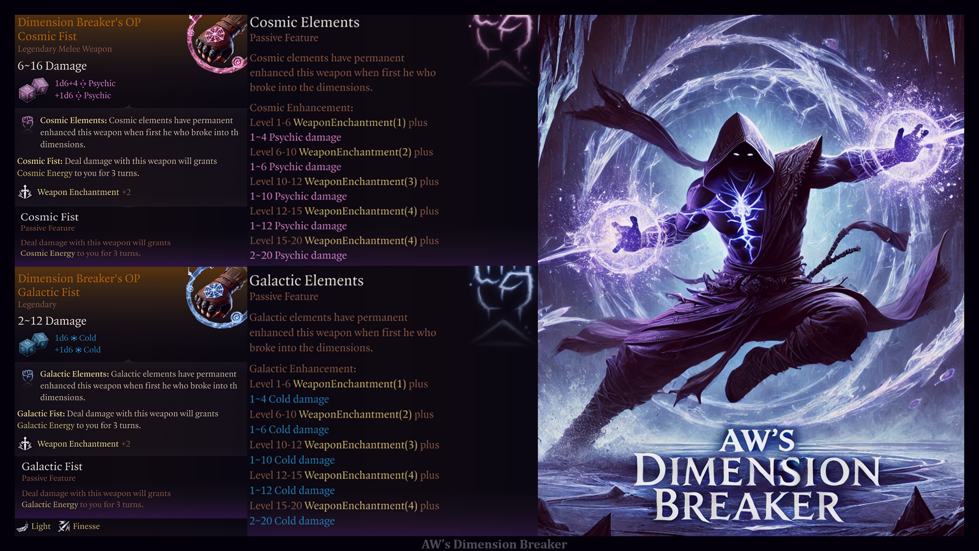 此模组系列通过修改物品来探索类似“职业”的玩法风格。装备套装为玩家提供了一种类似于职业的游戏体验,提供了新的法术、被动技能和能力,扩展了多职业构建选项。