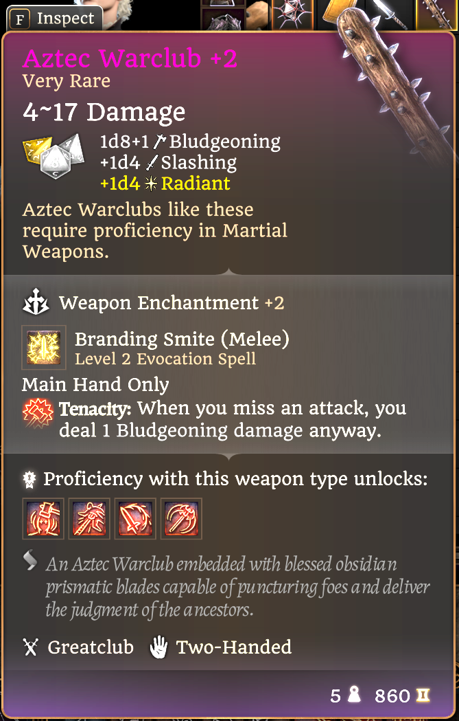 阿兹特克战棍 +2(第二幕最后一光旅店的塔莉出售):