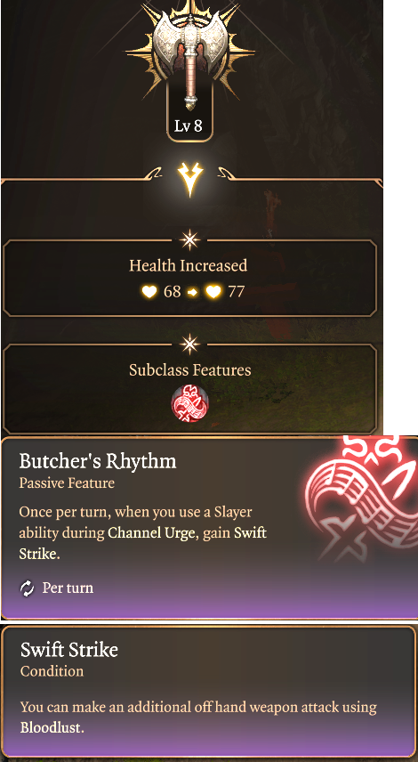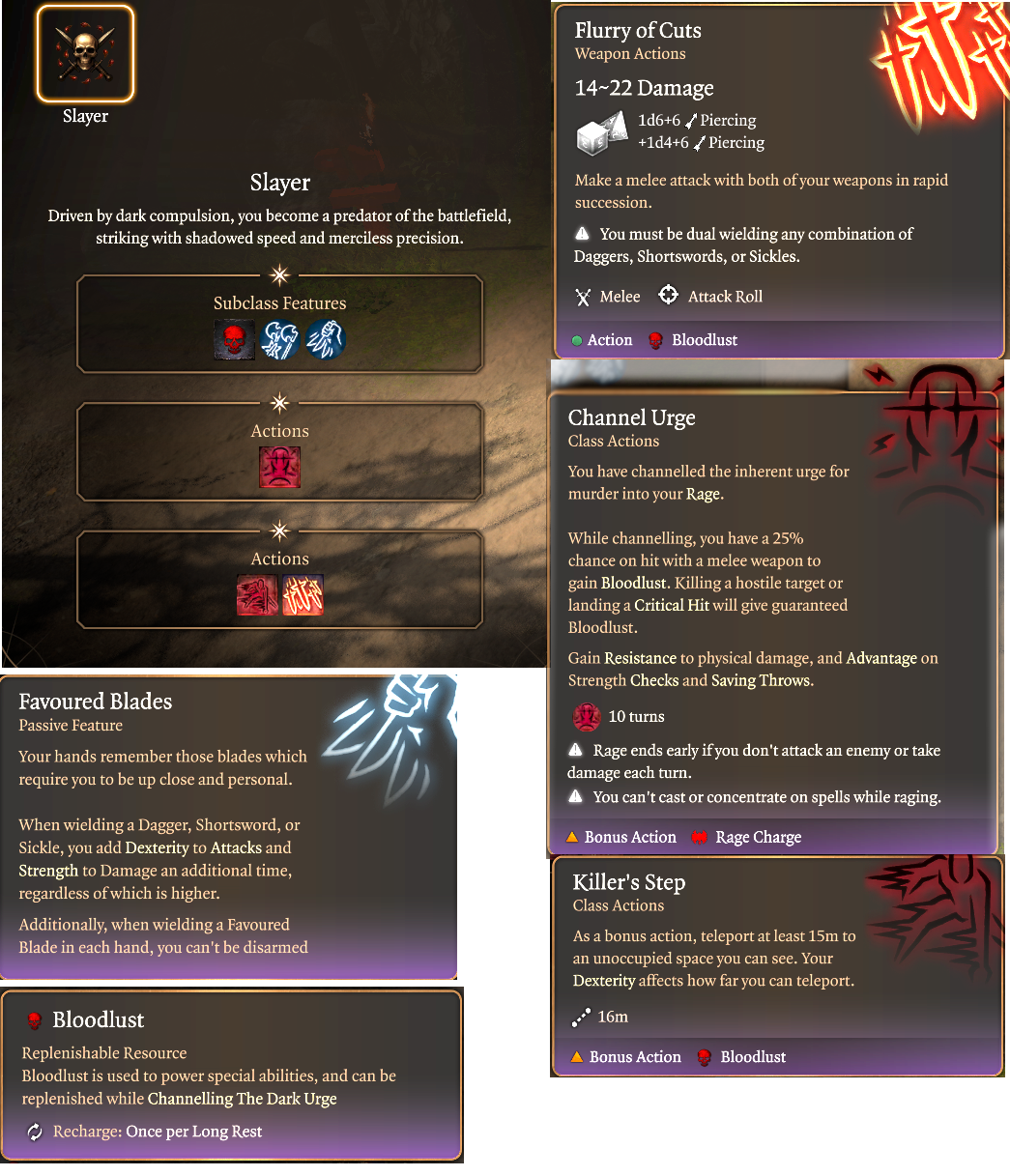 屠戮之道是一个副职业,它就是黑暗欲望的化身。我想要一个能够实现手持双匕首、勇猛战斗(如《巫师》中的莱索)幻想的同时,也能满足对黑暗欲望超自然一面的兴趣。