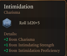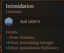 当你的力量高于魅力时,该模组会通过添加等于你力量调整值的额外加成来增强震慑检定,并移除魅力调整值。由于我无法阻止游戏应用负面的魅力修正,因此我会从总加成中减去魅力修正值以进行补偿。