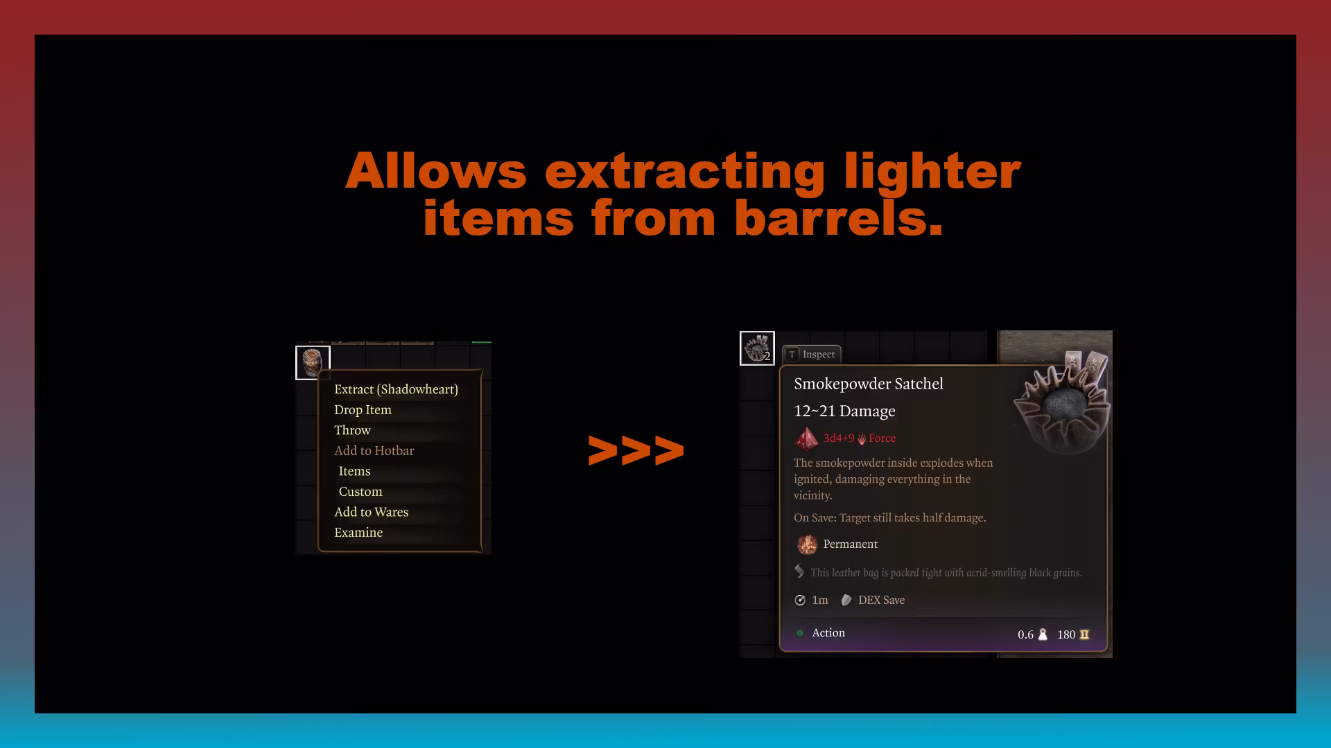 玩家可以从桶中提取组件到更轻便的物品。