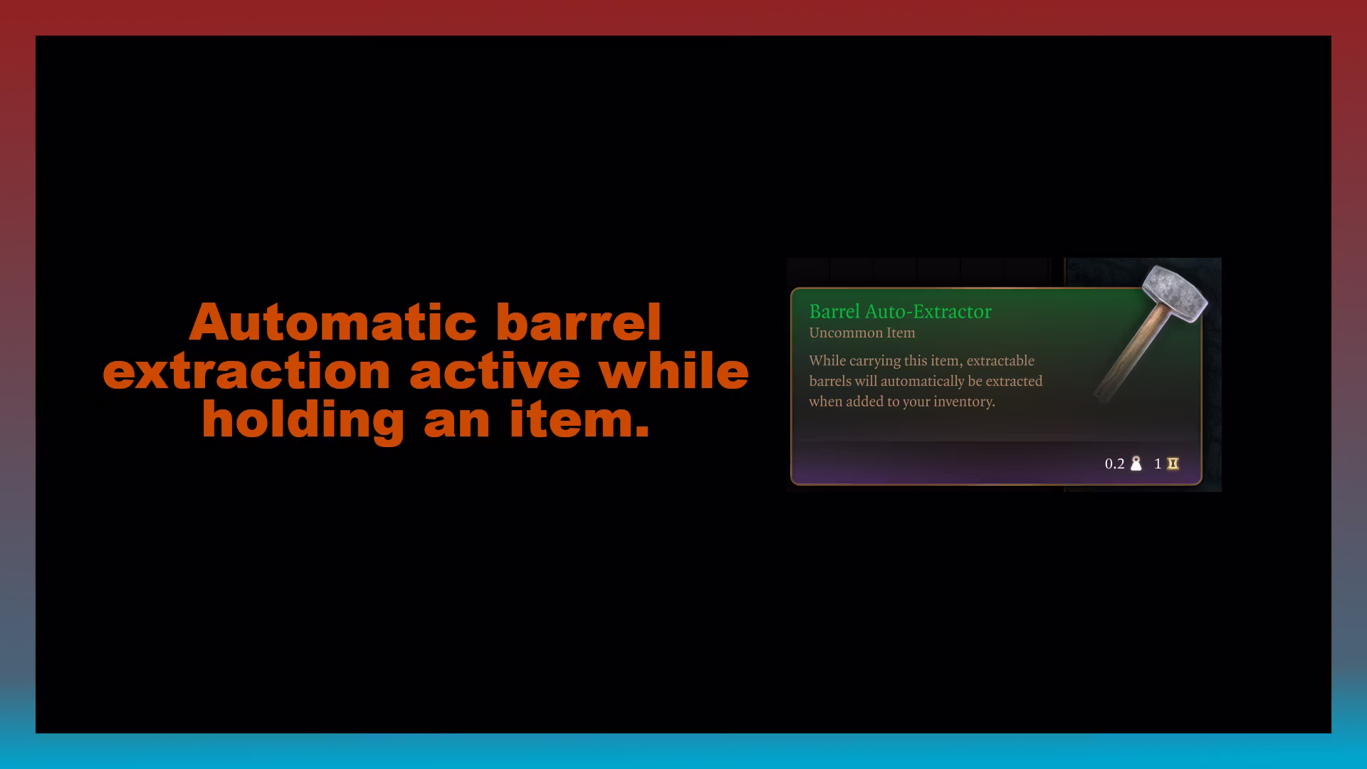 自动提取器– 当您携带这个物品时,任何可以提取的桶在拾取后将自动进行提取。可在教程宝箱和所有章节中的多个商人处获得。
