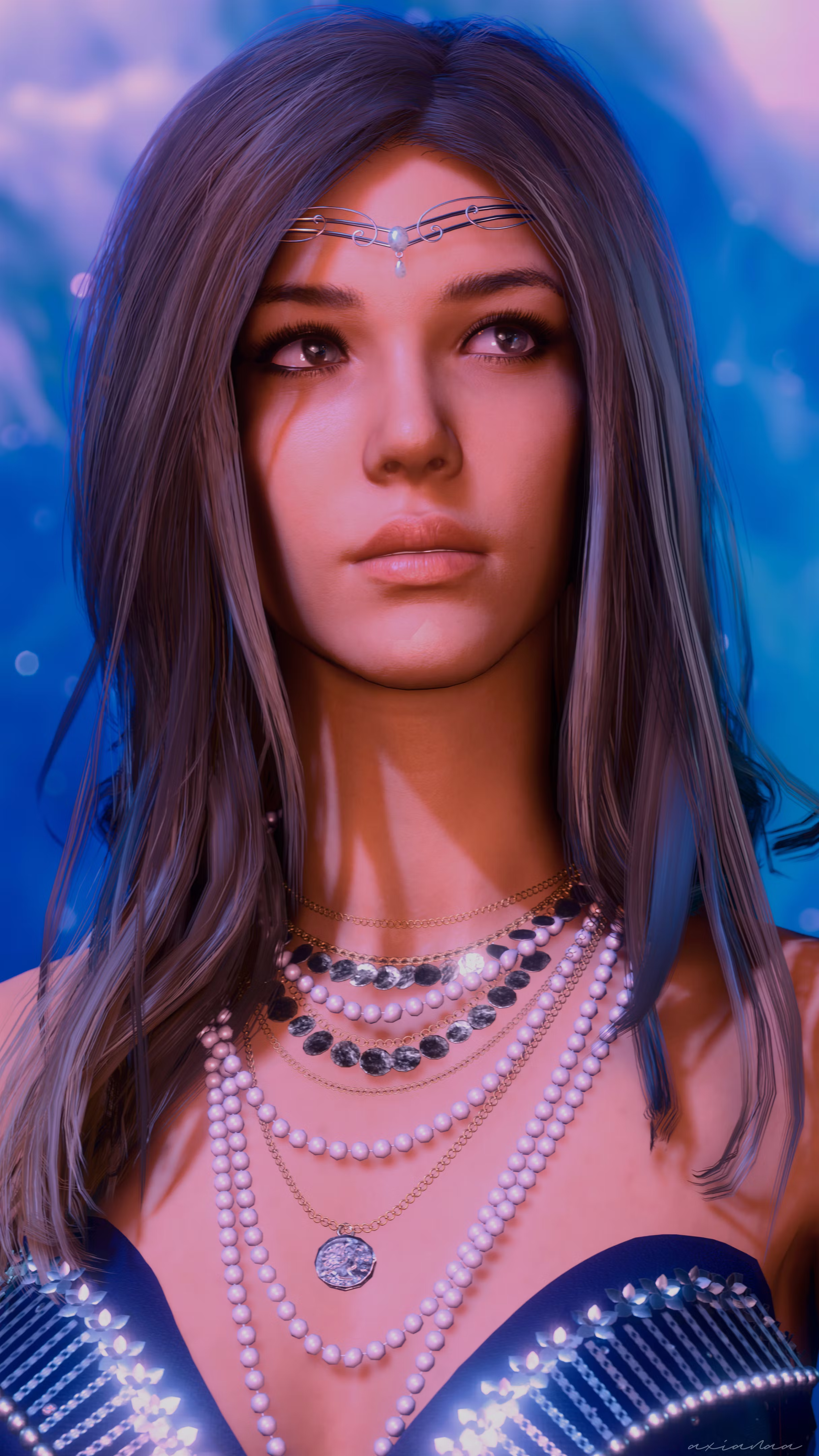 这个头环是为Kobold Juno定制的作品,并且适用于四种高体形角色。头环框架可以完全染色,但中心的月石不能染色,因为它应该看起来像真正的月石!在营地宝箱中可用于头部和内衣槽位。