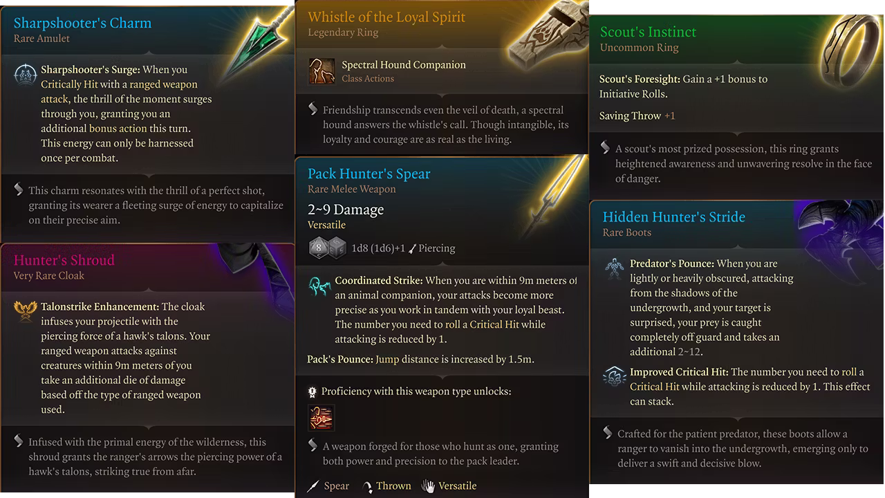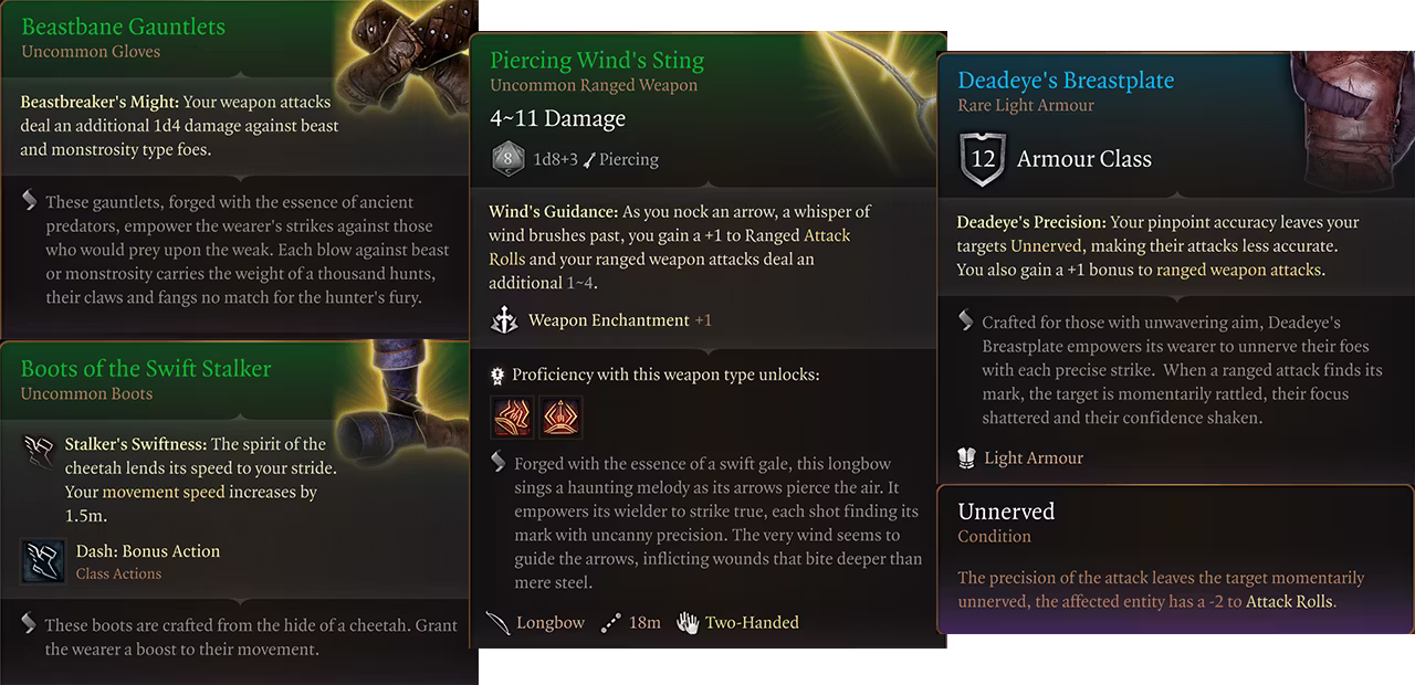 磨砺你的箭矢,加强你与自然生物的联系。《猎人装备》为游侠量身定制,提供了一套精选的装备,旨在提升你在使用弓箭和驯服野兽方面的技巧。无论你喜欢从远处精准射击还是与忠诚的动物伙伴并肩作战,《猎人装备》都能为你在任何情况下提供卓越的表现工具。此模组设计得无缝融入游戏现有机制中,确保所有玩家都能获得平衡且富有成就感的游戏体验。