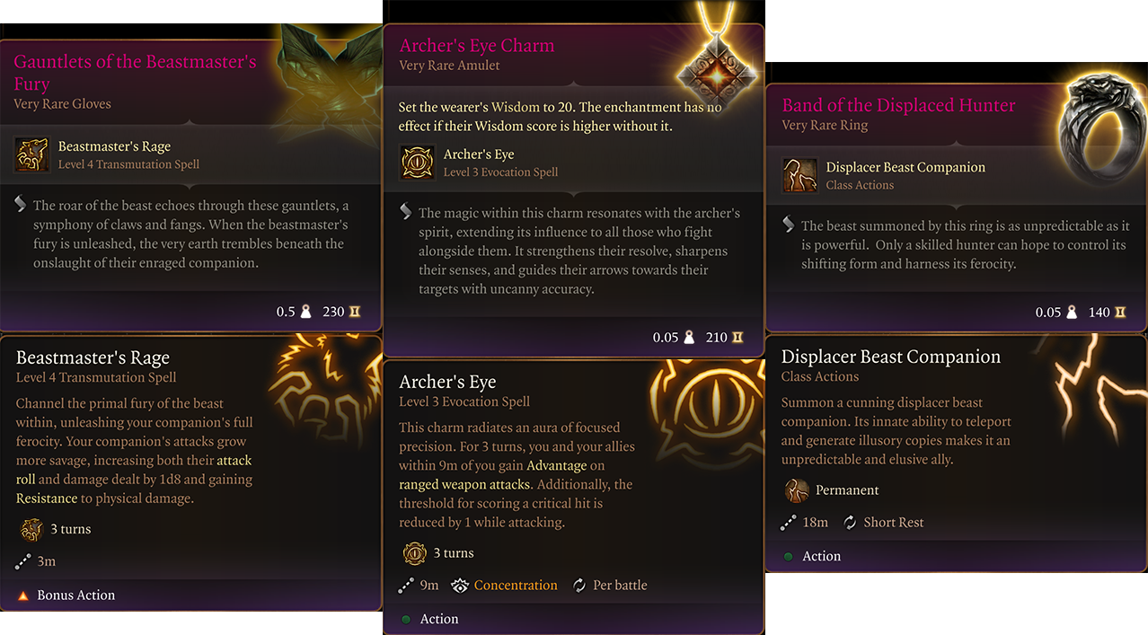 磨砺你的箭矢,加强你与自然生物的联系。《猎人装备》为游侠量身定制,提供了一套精选的装备,旨在提升你在使用弓箭和驯服野兽方面的技巧。无论你喜欢从远处精准射击还是与忠诚的动物伙伴并肩作战,《猎人装备》都能为你在任何情况下提供卓越的表现工具。此模组设计得无缝融入游戏现有机制中,确保所有玩家都能获得平衡且富有成就感的游戏体验。
